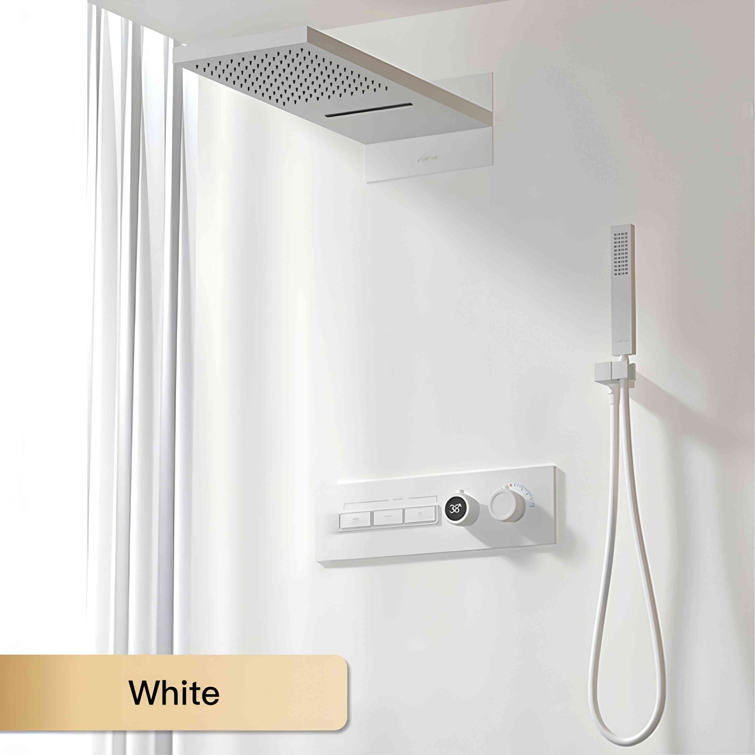 This intelligent shower system stands out with its combination of style and performance. Its dual control allows you to personalize your shower experience effortlessly, while the high-quality electroplated brass finish ensures durability and timeless elegance. The hidden installation method ensures your bathroom maintains a clean and uncluttered aesthetic.