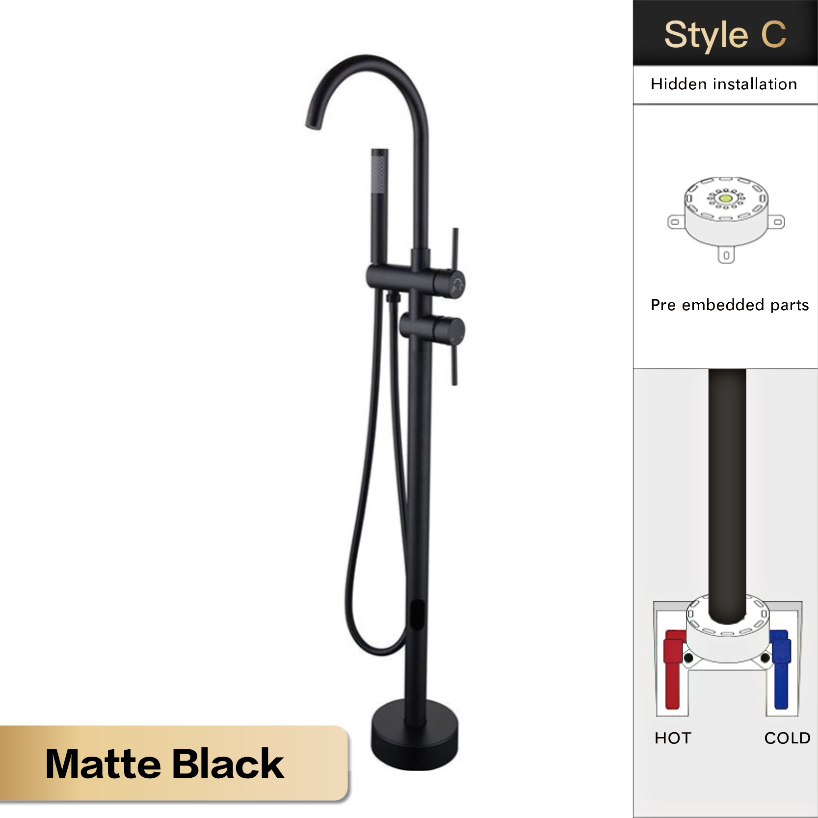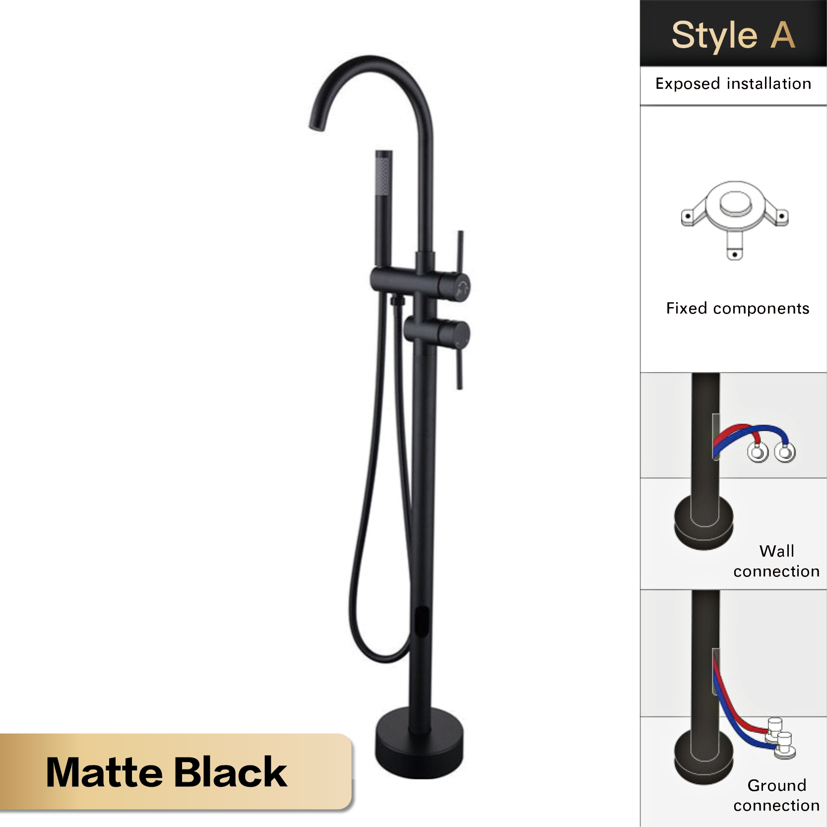 Add a touch of sophistication and functionality to your bathroom with this luxury black floor-standing faucet. Its sleek design, premium materials, and dual functionality make it a must-have for anyone looking to create a modern, spa-like retreat at home. Transform your bathing routine and elevate your space today.