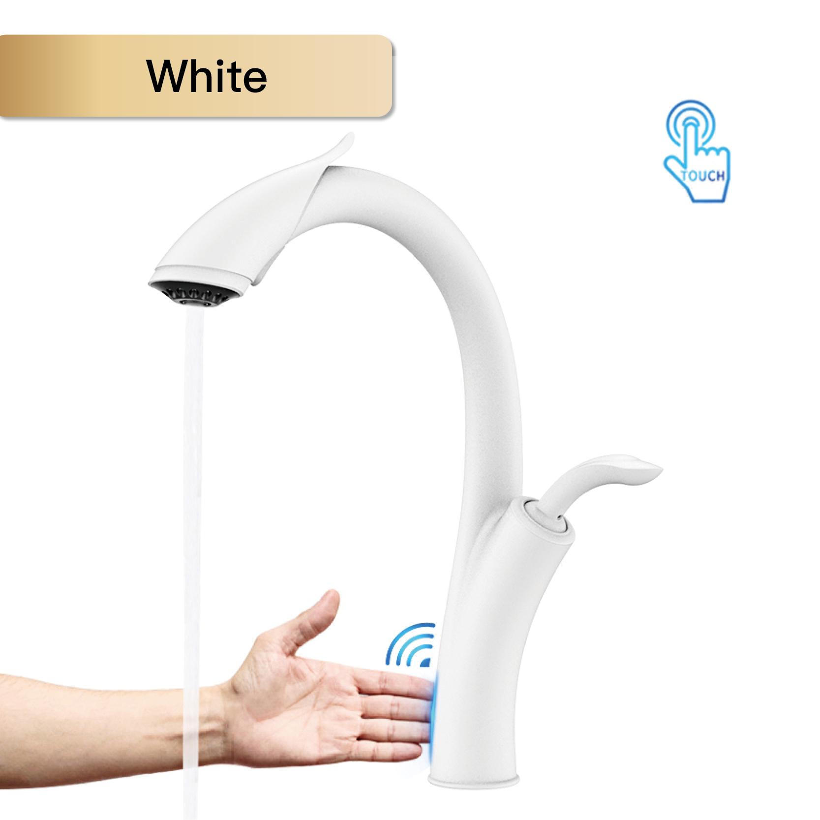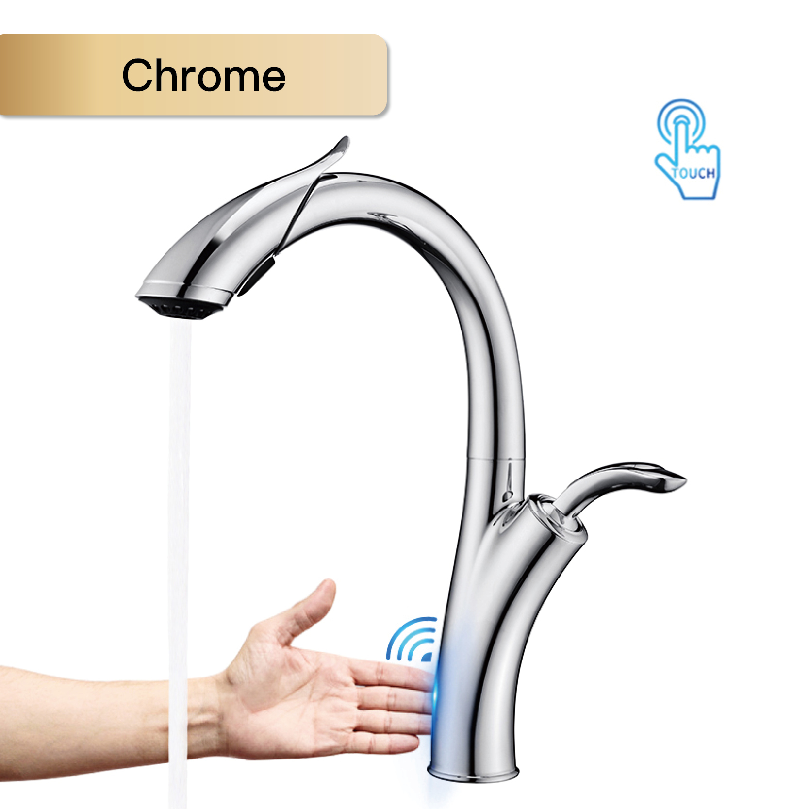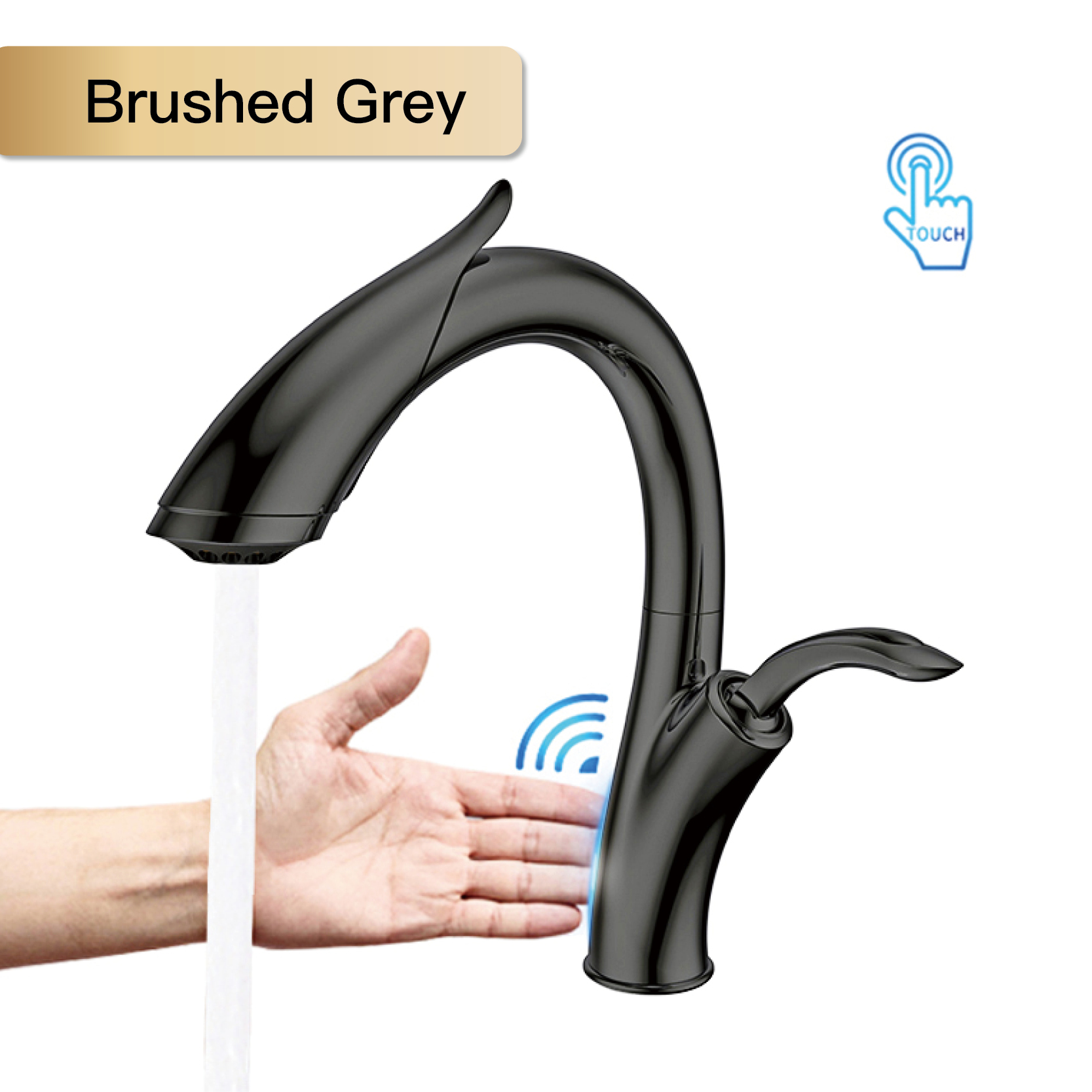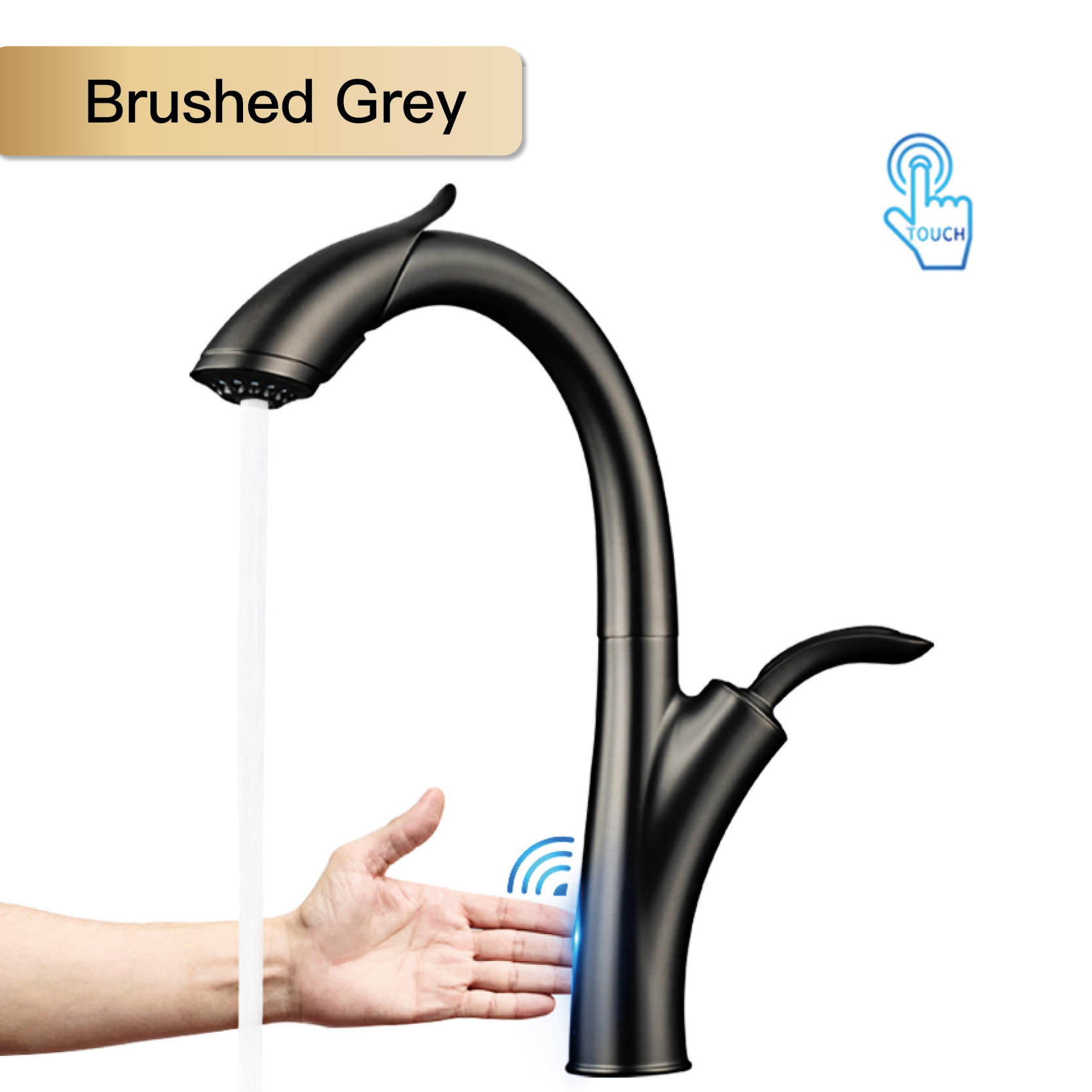 Luxury Gun Grey Intelligent Touch Kitchen Faucet with Pull-Out Spray for Hot & Cold Water