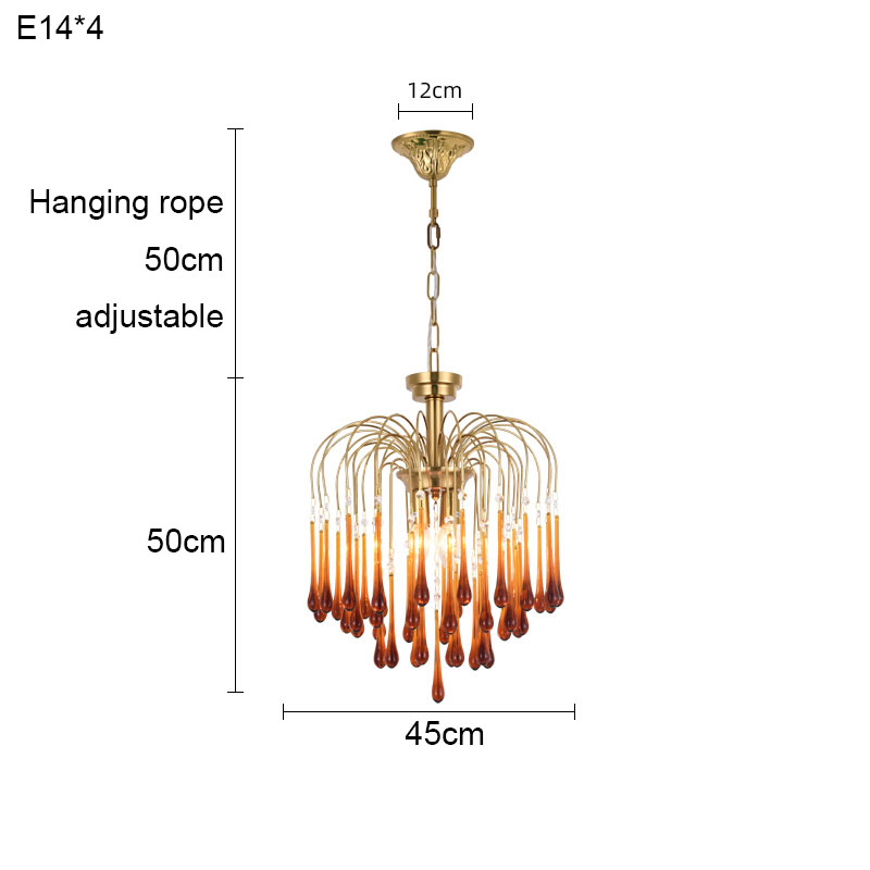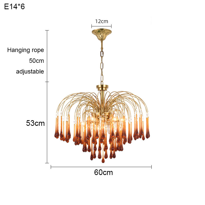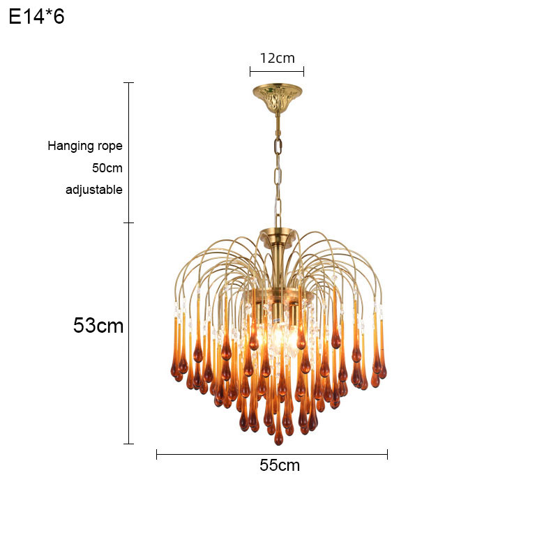 Transform your living space with this stunning Luxury Italian Copper Crystal Chandelier. Designed with a vintage-inspired water drop silhouette and crafted with exceptional attention to detail, this chandelier brings a touch of French luxury into your living room, bedroom, or dining area. Its exquisite copper finish pairs harmoniously with creative crystal accents, delivering an opulent yet versatile lighting solution for your home.