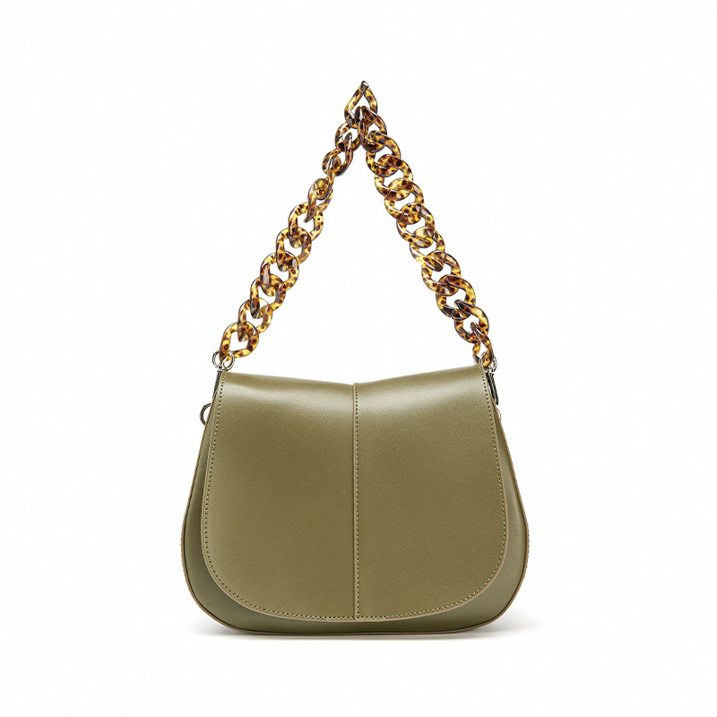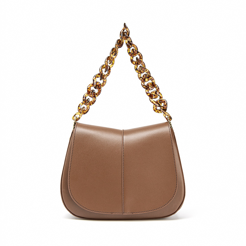 Luxury Leather Shoulder Bag with Acrylic Chain Detail