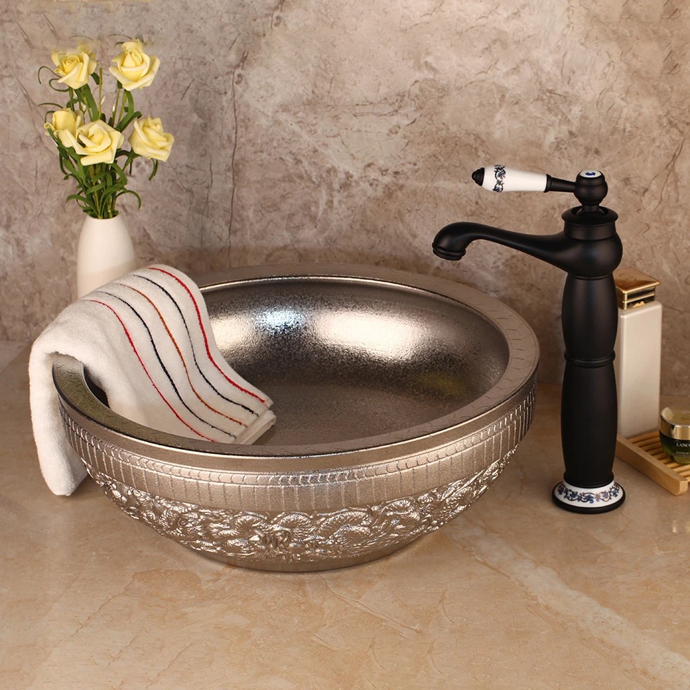 With its graceful blend of artisan craftsmanship and modern design, this silver ceramic bathroom sink set brings a touch of luxury to your daily routine. Whether you’re refreshing your bathroom style or completing a full renovation, this sink and faucet set is an ideal choice. The unique hand-painted detailing on the bowl and the elegant, oil-rubbed black faucet make it a standout piece that combines beauty and practicality.