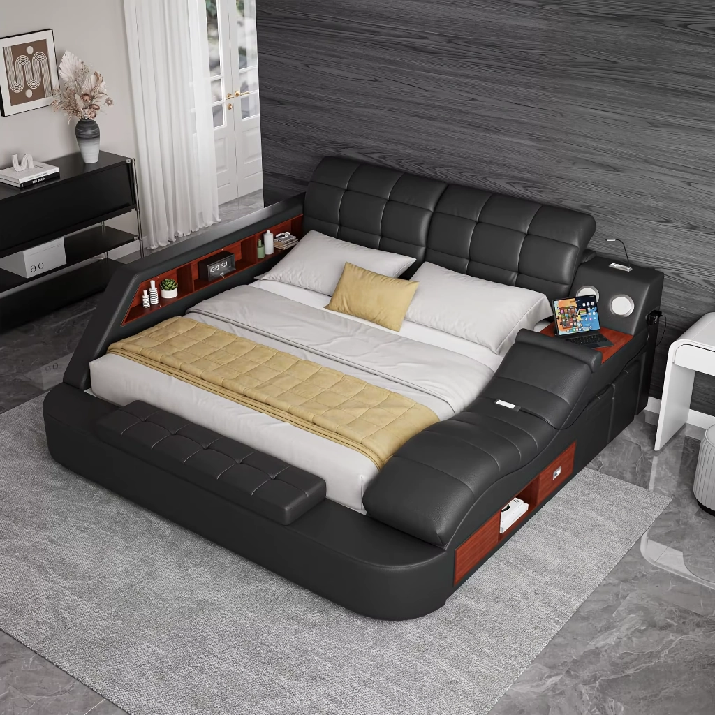 Luxury Smart King Bed with Massage Recliner, Bluetooth Speakers, Storage & USB Ports