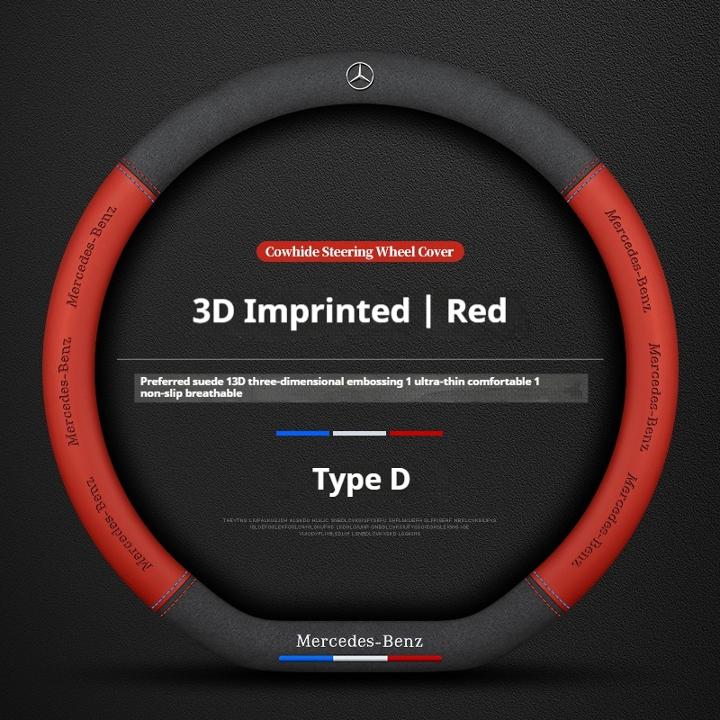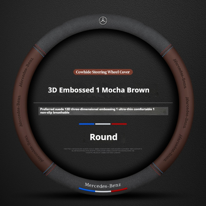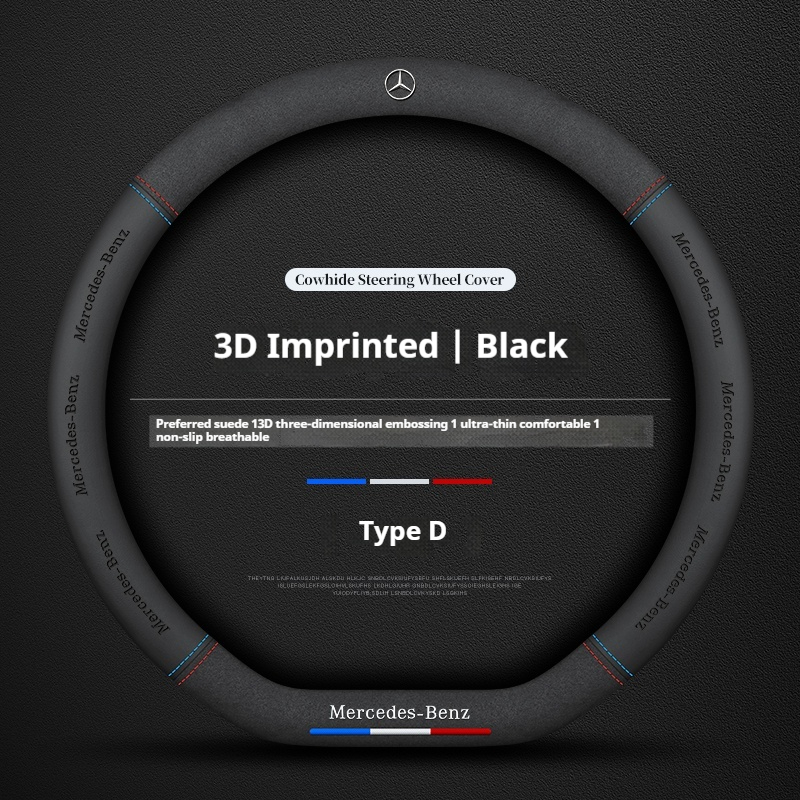 Luxury Suede 3D Logo Steering Wheel Cover for Mercedes-Benz A-Class, C-Class, GLC