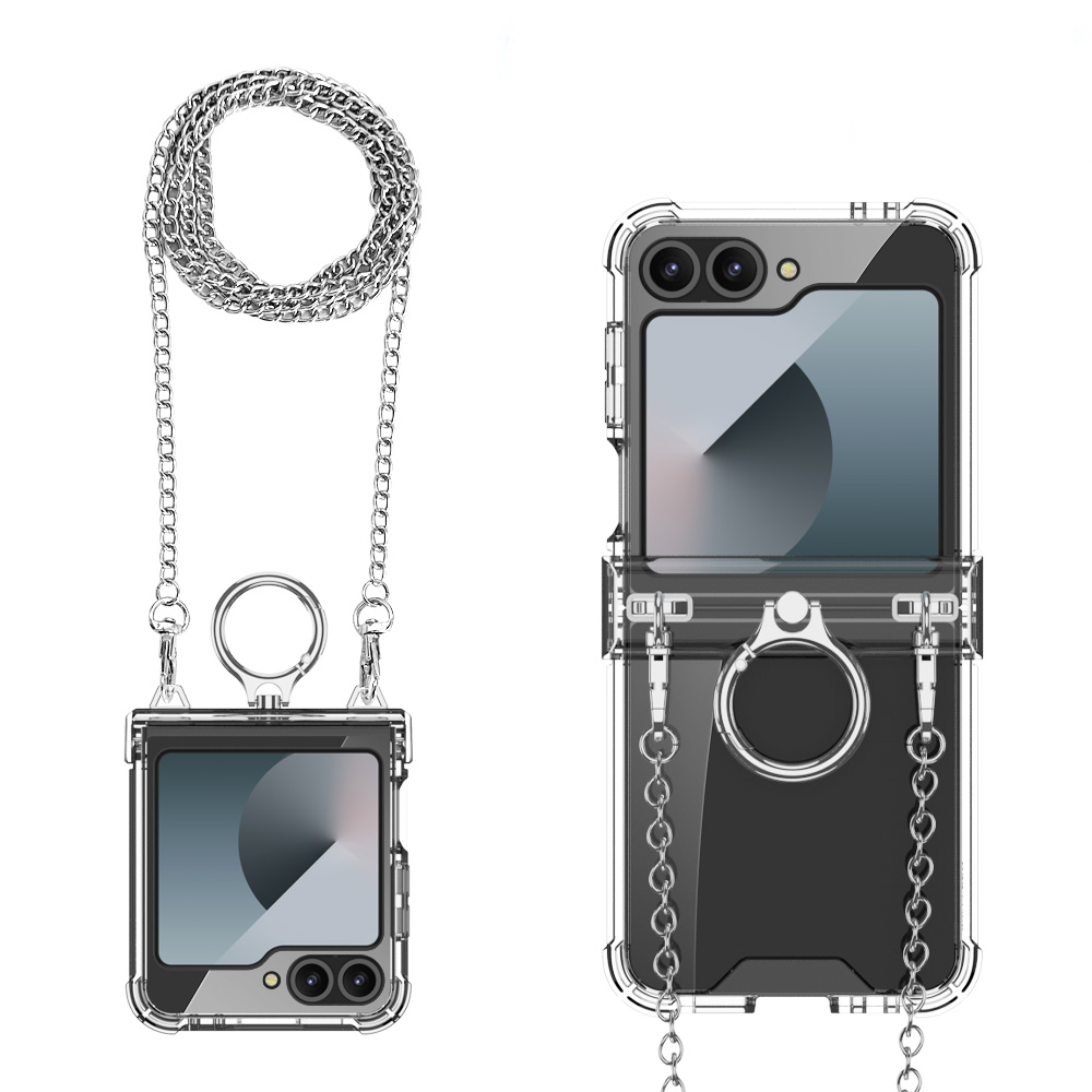 Luxury Transparent Case with Ring Holder and Crossbody Chain for Samsung Galaxy Z Flip