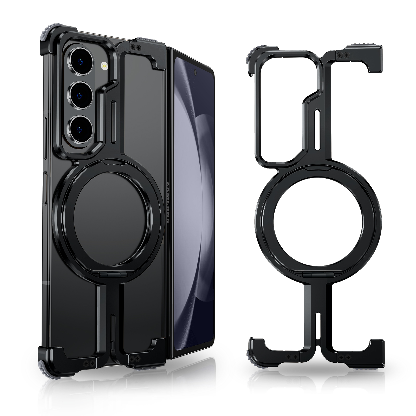 This case is designed specifically for Samsung Galaxy Z Fold 5 and Z Fold 6, ensuring a precise fit and superior performance. Its magnetic aluminum alloy construction offers the perfect balance of durability and style, while the lightweight design ensures easy handling. The frameless, slim profile maintains the phone’s modern look, and the addition of practical features like a built-in kickstand and wireless charging compatibility makes it a true all-in-one solution.