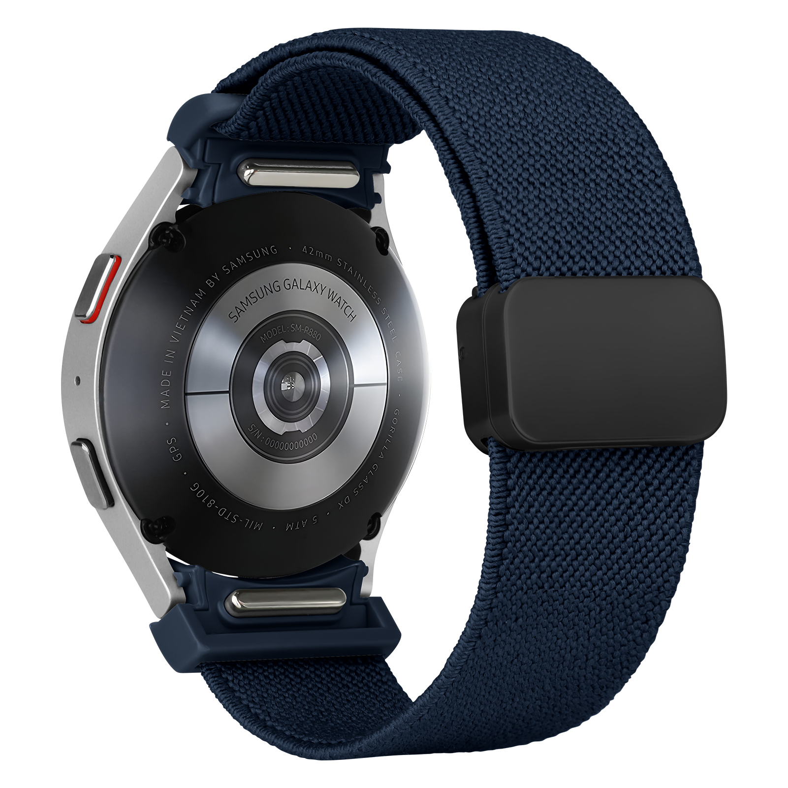 Enhance the look and comfort of your Samsung Galaxy Watch with our premium Magnetic Nylon Band. Specifically designed for Galaxy Watch models 6, 5, and 4, this strap offers an ideal blend of style, functionality, and durability. Whether you’re working out, attending meetings, or enjoying your daily routines, this band ensures your watch stays secure and comfortable on your wrist.