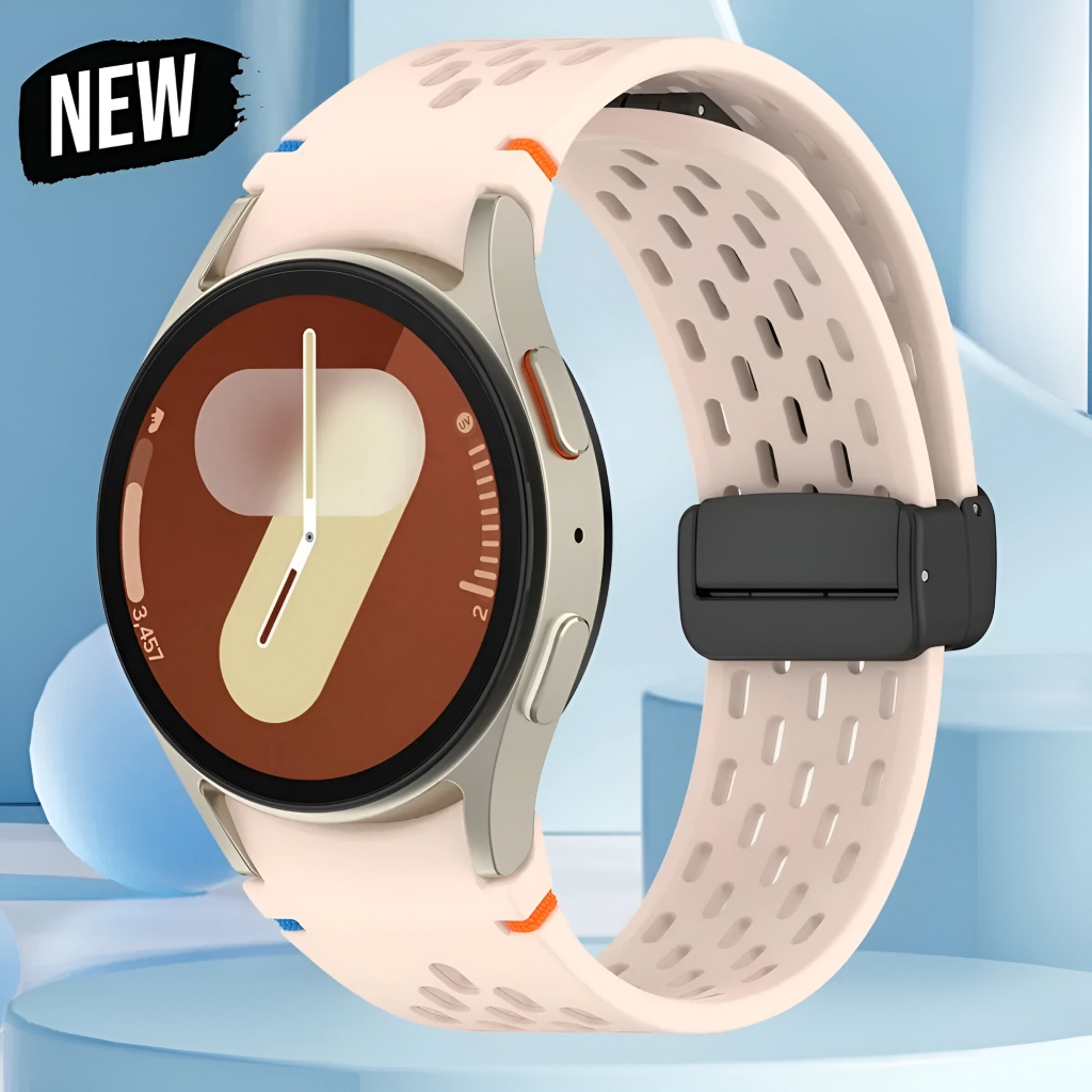 Transform your Samsung Galaxy Watch into a sleek accessory with this premium Magnetic Silicone Strap. Designed to fit Galaxy Watch models 6, 5, 4, Classic, and Pro (44mm), this band ensures a snug, gap-free fit for a flawless look. Whether you’re heading to the gym, a business meeting, or a casual outing, this strap adds a touch of sophistication to your wrist while keeping your watch secure and comfortable.