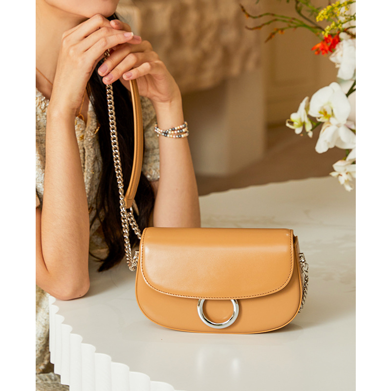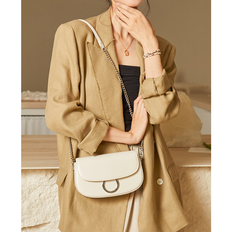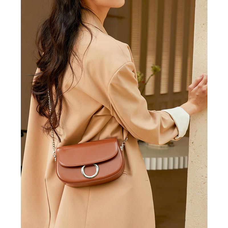 Metal Chain Saddle Bag – Stylish Split Leather Crossbody Bag