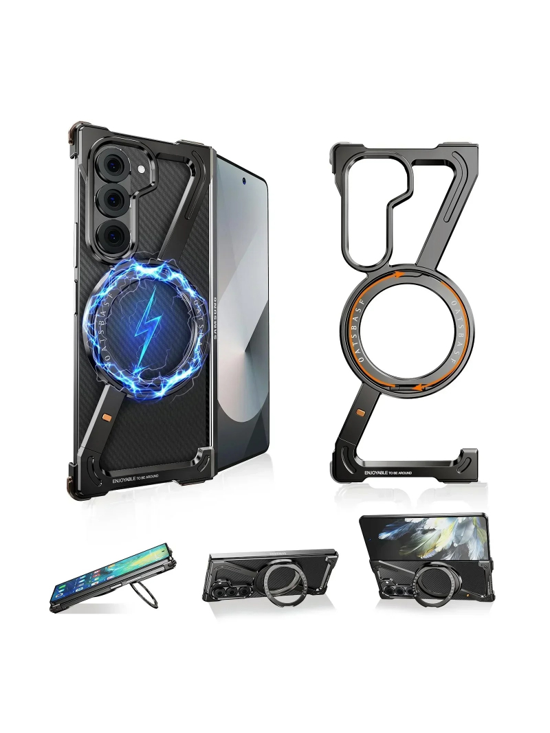 Elevate your Samsung Galaxy Z Fold 6/5 with this sleek and durable metal magnetic phone case. Designed for ultimate protection and enhanced usability, this frameless bumper cover seamlessly combines modern aesthetics with practical features like a MagSafe-compatible ring stand and wireless charging compatibility. Whether you’re at work, at home, or on the go, this case keeps your device secure and stylish.