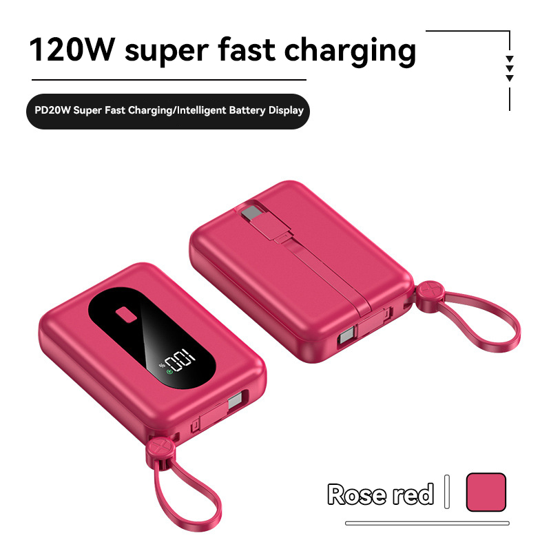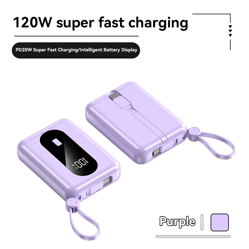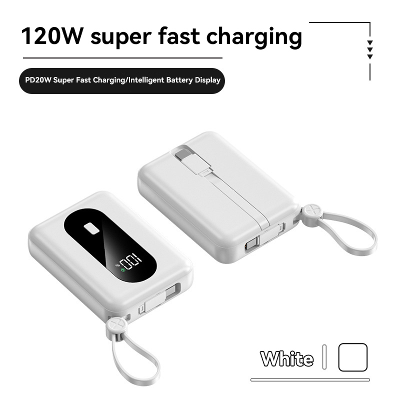 • Built-in Cable: Includes an integrated cable for hassle-free charging, eliminating the need to carry extra cords.