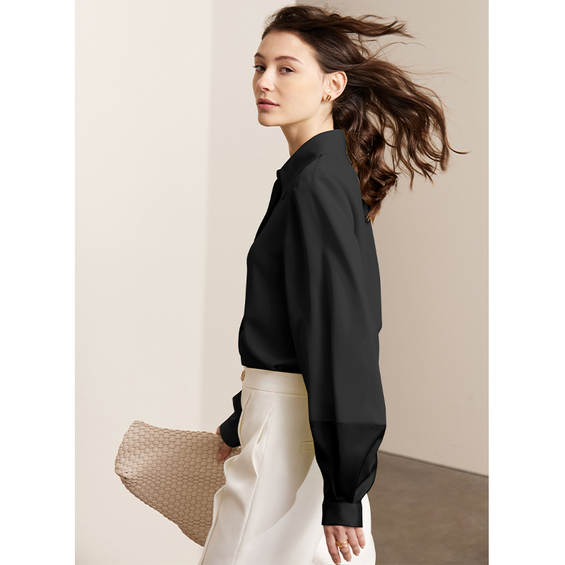 Discover a perfect blend of chic minimalism and timeless elegance with this beautiful Lantern Sleeve Shirt. Designed with modern women in mind, this solid black blouse exudes sophistication, making it a wardrobe essential for spring and summer. Its minimalist design, accented by statement lantern sleeves and a flattering regular fit, makes it versatile enough to wear at the office, on a casual day out, or even for an evening gathering. With its sleek, polished look, this blouse is sure to become your new go-to for effortlessly refined style.