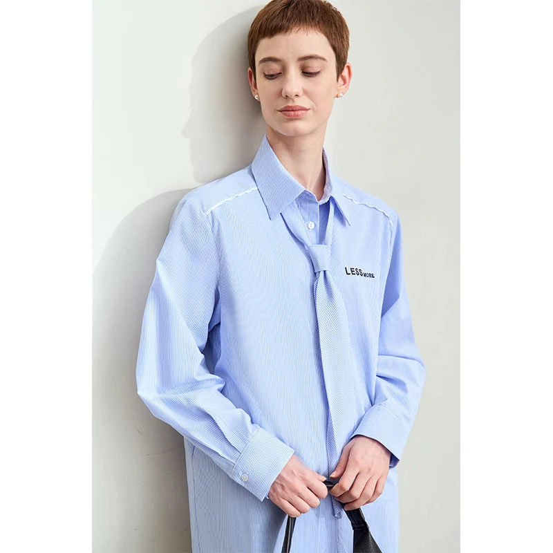 Step into the season with confidence and style in our Minimalist Striped Shirt for Women. Designed for the modern woman who values both sophistication and comfort, this shirt combines timeless design with contemporary details. Perfect for autumn, it features a classic striped pattern, a versatile detachable tie, and exquisite embroidery that adds a unique touch to this wardrobe staple.