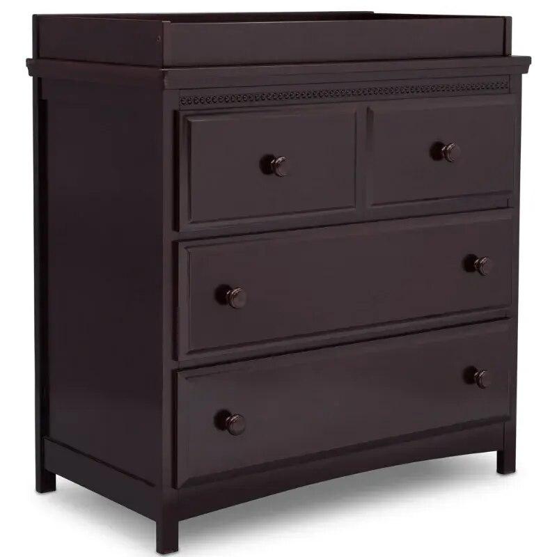 Introducing a masterpiece of nursery furniture that blends timeless design with unparalleled functionality – our Modern 3-Drawer Dresser with Removable Changing Top in Dark Chocolate. Designed to cater to both your newborn’s needs and evolving toddler stages, this dresser is more than just a piece of furniture; it’s a lifelong companion for your child’s bedroom. Crafted with meticulous attention to detail, it embodies classic aesthetics with a modern twist, ensuring it complements any nursery decor seamlessly.