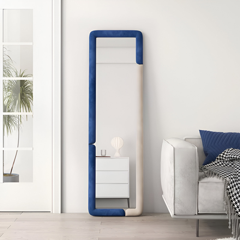 Add style and functionality to your home or clothing store with this modern full-body decorative floor mirror. Designed to complement any contemporary apartment, bedroom, or living room, this mirror combines sleek aesthetics with practical utility. Its creative design not only enhances the look of your space but also serves as the perfect accessory for makeup, outfit checks, or home décor.