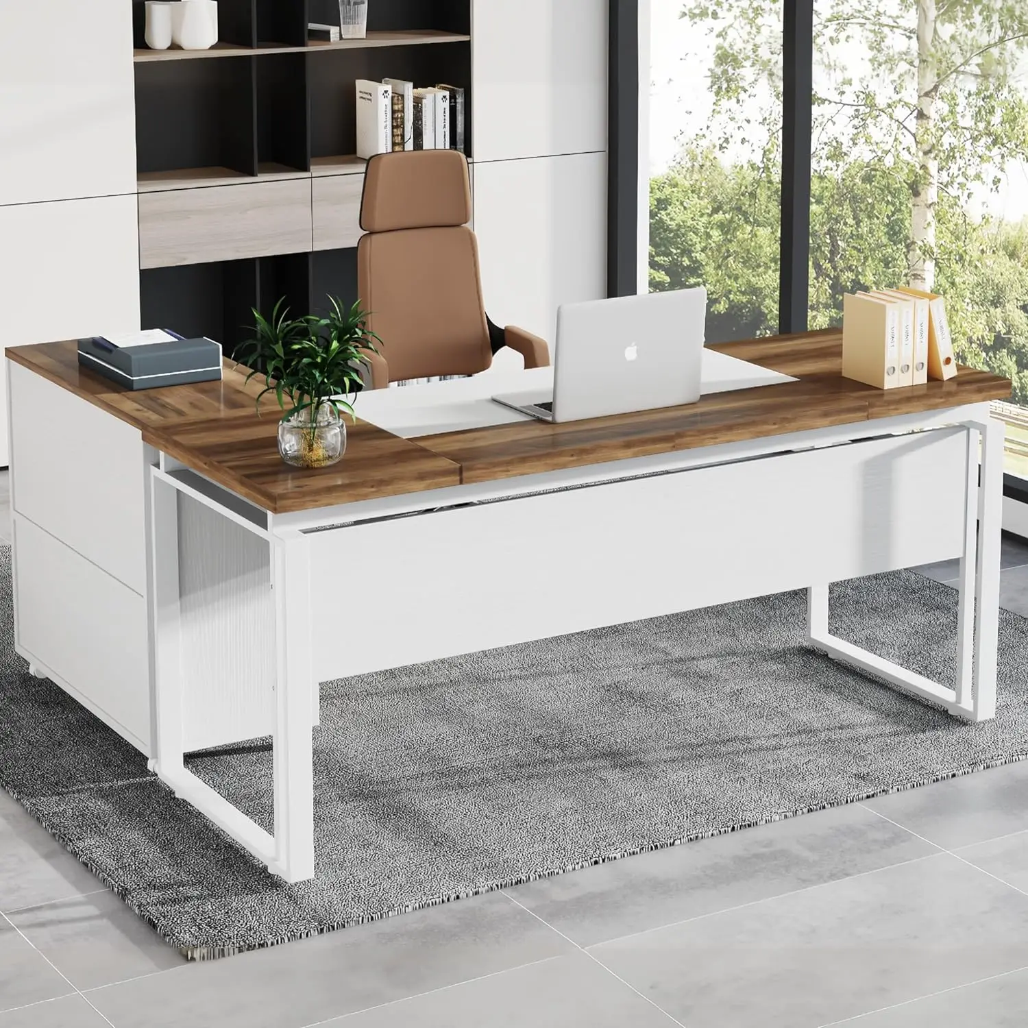 The combination of an L-shaped layout, integrated drawers, and a file cabinet sets this desk apart. The thoughtful design helps you stay organized while providing a stylish focal point for your office. Its robust wood construction guarantees stability and longevity, making it a valuable investment for your workspace. The sleek design not only boosts productivity but also enhances the aesthetics of any room.