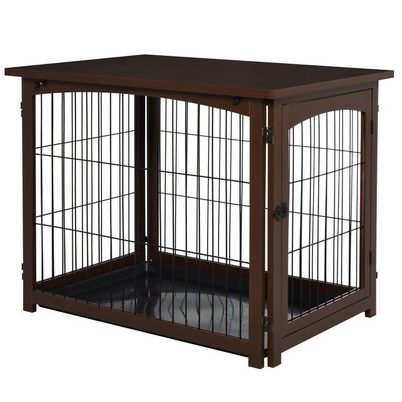 Our pet crate stands out with its 3-in-1 design, serving as a pet fence, a gate, and a side table, offering unparalleled versatility and functionality. The combination of solid fir wood panels and metal wires ensures durability and security, while the spacious tabletop provides a practical space for your sundries. The elegant brown finish enhances any room, allowing this piece to integrate perfectly with your existing furniture.