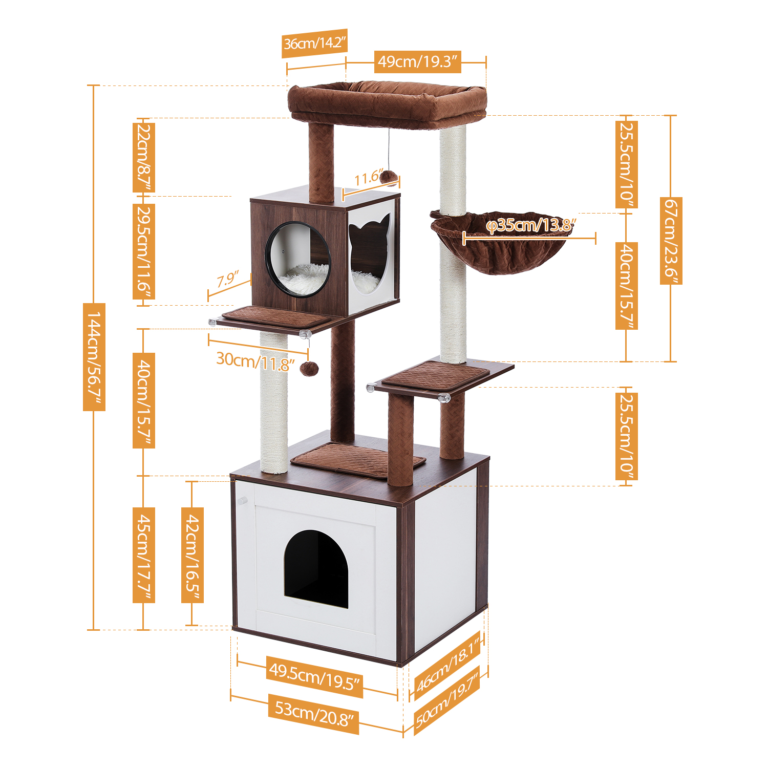 • Spacious and Comfortable: With multiple platforms, a hammock, and a condo, this cat tree offers plenty of spots for your cats to sleep, play, and rest.