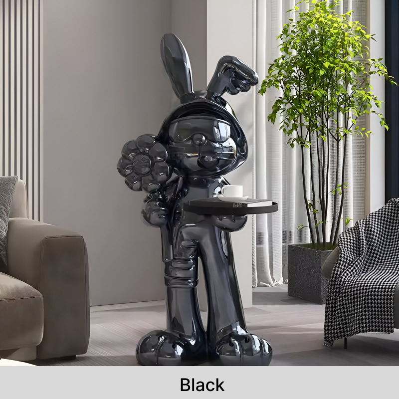 The Rabbit Statue Tray Table is more than just a piece of furniture—it’s a statement of style and creativity. This multifunctional décor item serves as a side table while delighting guests with its playful design. Whether placed in the living room, bedroom, or hallway, its presence instantly elevates the ambiance and adds a touch of whimsy to your home.
