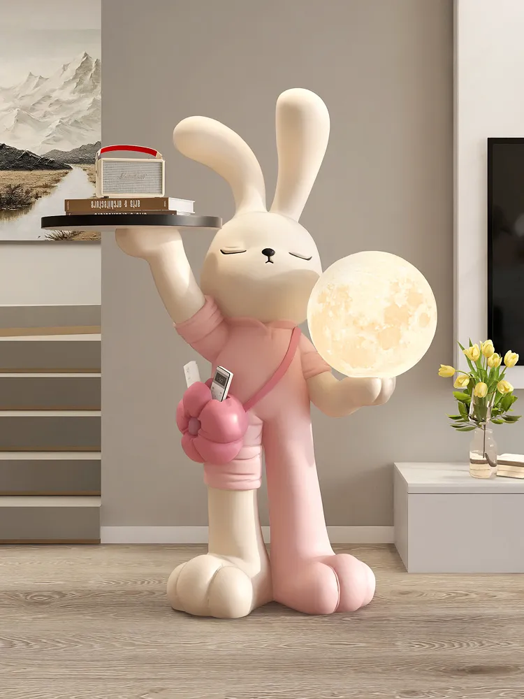 This rabbit statue is more than just a decoration. Its integrated tray design allows it to double as a functional storage solution, ideal for holding coffee cups, keys, books, or small ornaments. Whether placed in your living room, bedroom, entryway, or study, this adorable sculpture seamlessly blends with modern, Nordic, or light luxury interiors. Choose from a selection of elegant colors, including pink, brown, white, and gray, to complement your home’s aesthetic.