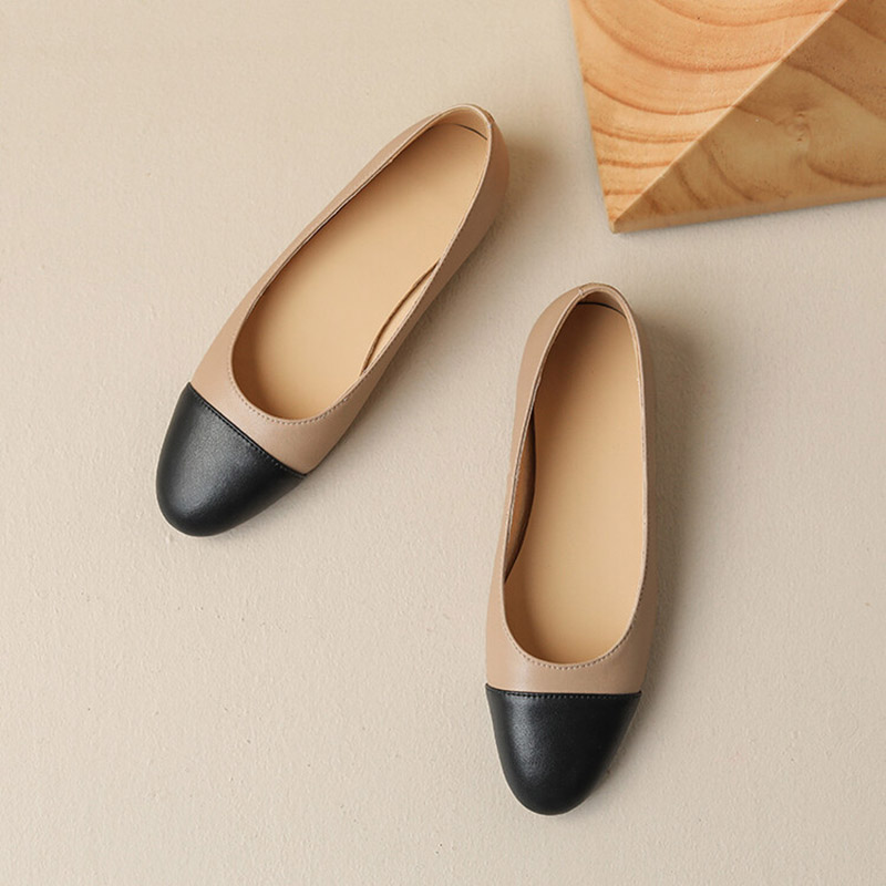 Step into style and comfort with these patchwork soft leather flats, designed to blend fashion with practicality. Perfect for the office or a casual outing, these low-heeled ballet pumps are a versatile addition to your wardrobe. Made with genuine leather, these shoes offer a sophisticated, polished look while ensuring long-lasting durability and comfort.