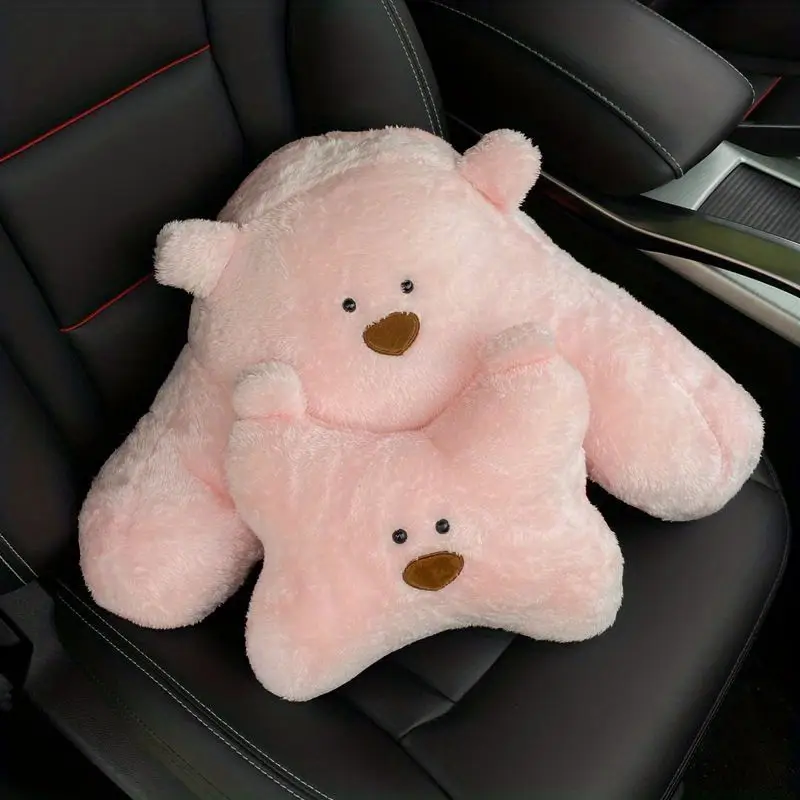 Plush Cute Bear Car Headrest Neck Pillow & Lumbar Support for Tesla
