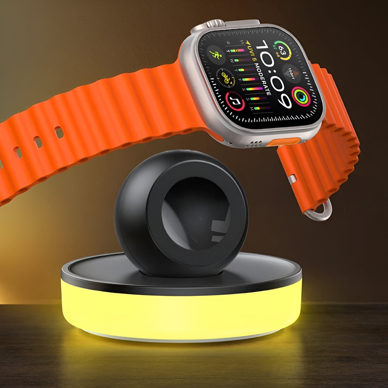 The Portable Apple Watch Magnetic Charging Stand is the ultimate solution for convenient and stylish charging. Designed exclusively for Apple Watch, this compact charging stand combines functionality with modern aesthetics, making it perfect for your bedside table, office desk, or on-the-go lifestyle. Its innovative 3-in-1 magnetic charging system and customizable ambient lighting make it a standout accessory for any Apple enthusiast.
