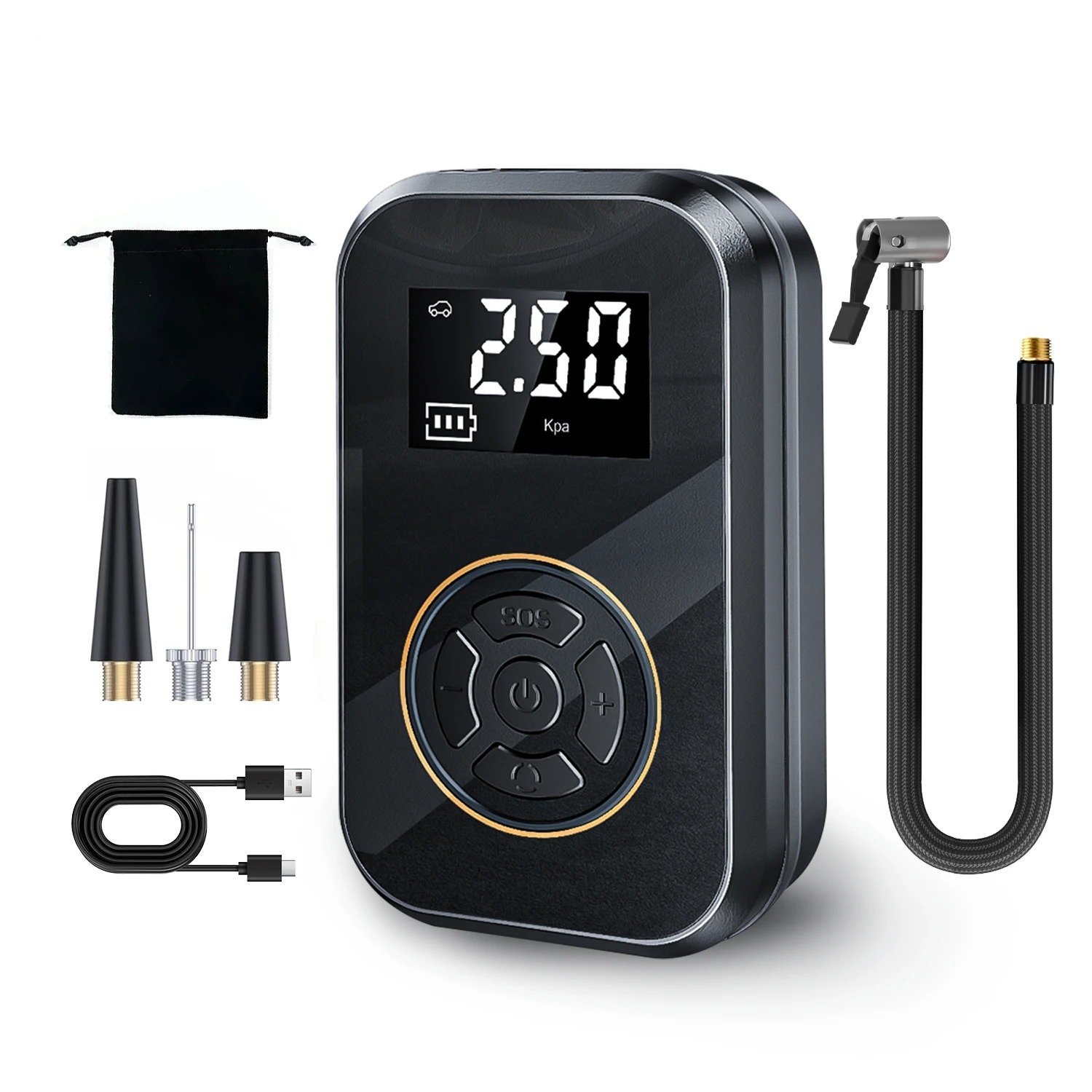 Gone are the days of struggling with manual pumps or long waits at gas stations. With this compact and efficient tire inflator, you can easily maintain your tire pressure wherever you go. Its multifunctionality makes it perfect for inflating more than just tires—use it for your bike, sports equipment, and more. Plus, with the included USB charging cable, keeping it powered up is a breeze, ensuring you’re always ready for your next adventure.