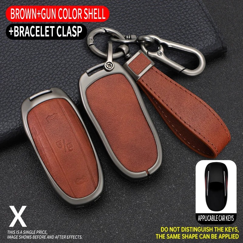 Premium Alloy Leather Smart Key Case for Tesla Model X