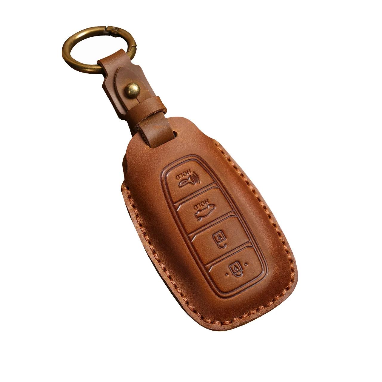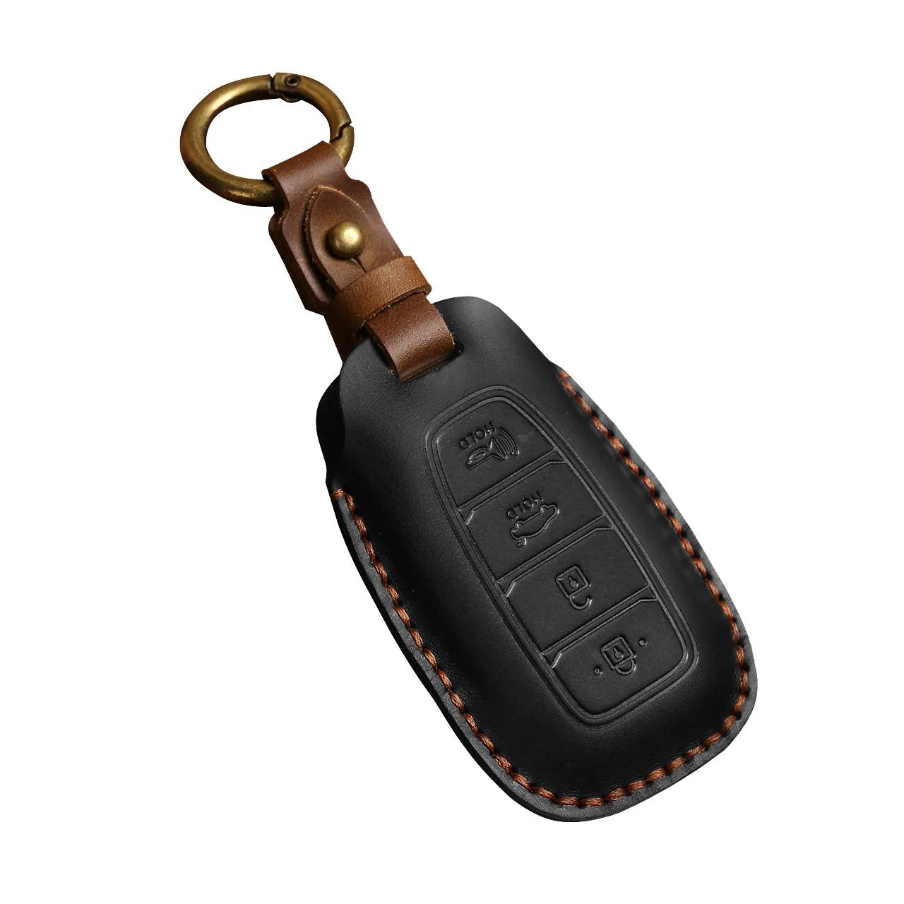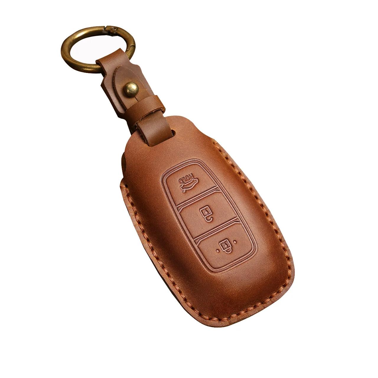 Premium Leather Car Key Cover for Hyundai Elantra, Santa Fe, Kona