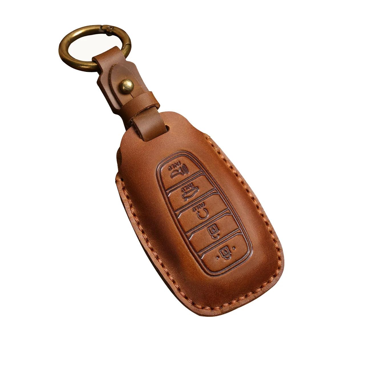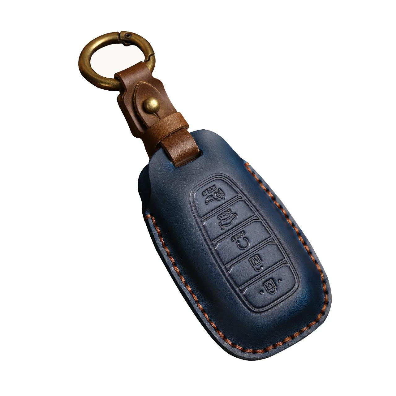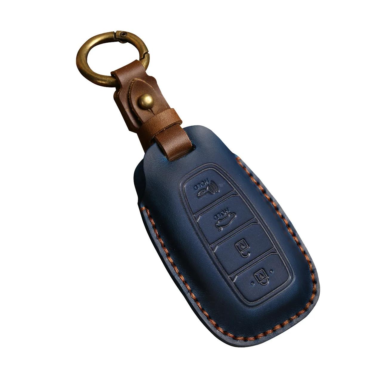 Premium Leather Car Key Cover for Hyundai Elantra, Santa Fe, Kona
