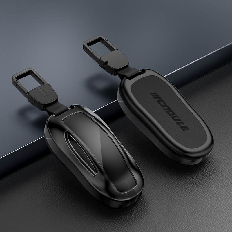 Premium Zinc Alloy & Leather Key Fob Cover for Tesla Model 3/S/Y – Smart Protection