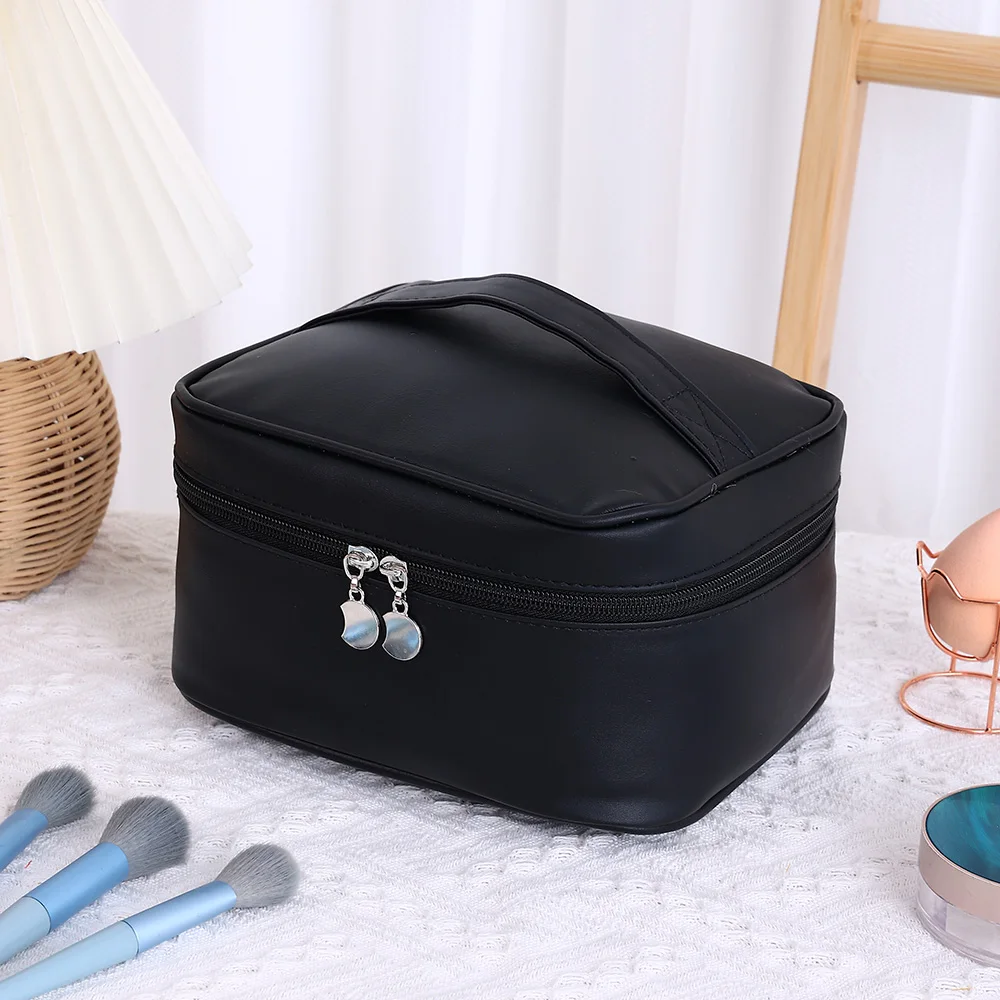 Made from high-quality PU leather, this bag is not only durable but also water-resistant, protecting your makeup from accidental spills or moisture. Its large opening design makes it easy to see all your items at a glance, so you no longer need to dig through a traditional makeup bag to find what you need. Plus, the sturdy zipper ensures that all your products are securely stored, giving you peace of mind wherever you go.