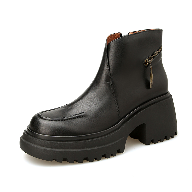 Our Retro Genuine Leather Ankle Boots are designed for those who appreciate classic style with a modern twist. The premium cow leather offers both durability and luxury, while the short plush lining ensures your feet stay warm and cozy. The high square heel provides a sophisticated look without sacrificing stability, making these boots perfect for both everyday wear and special occasions.
