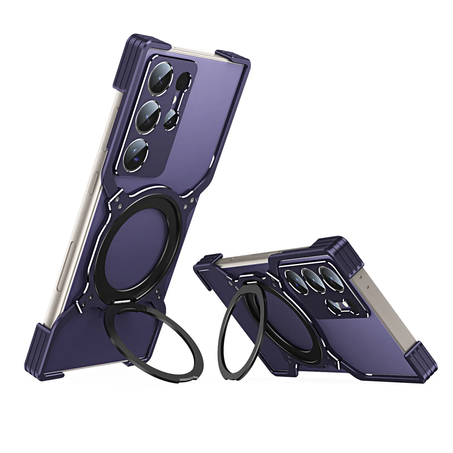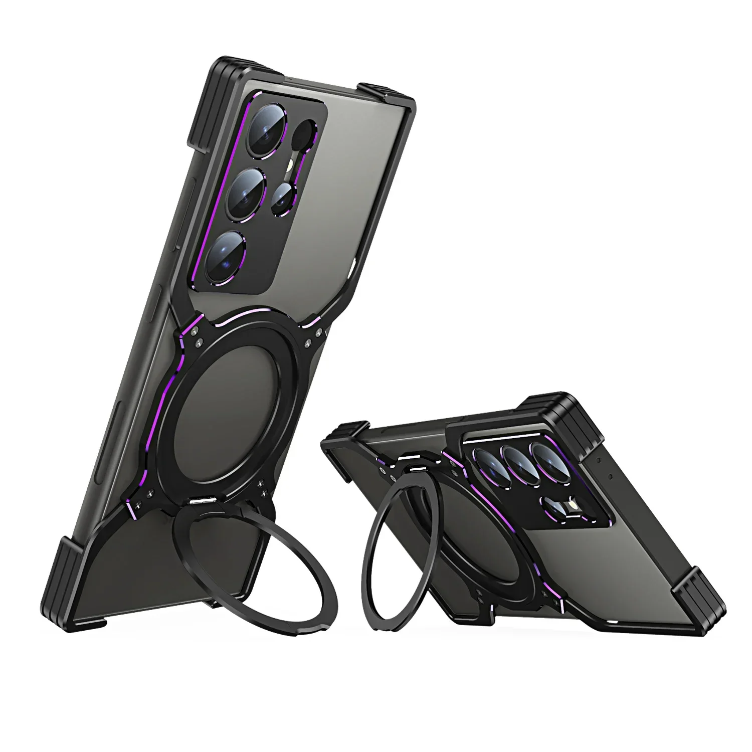 Rimless Metal Bumper with Magnetic Holder & Lens Cover for Samsung Galaxy S23 Ultra