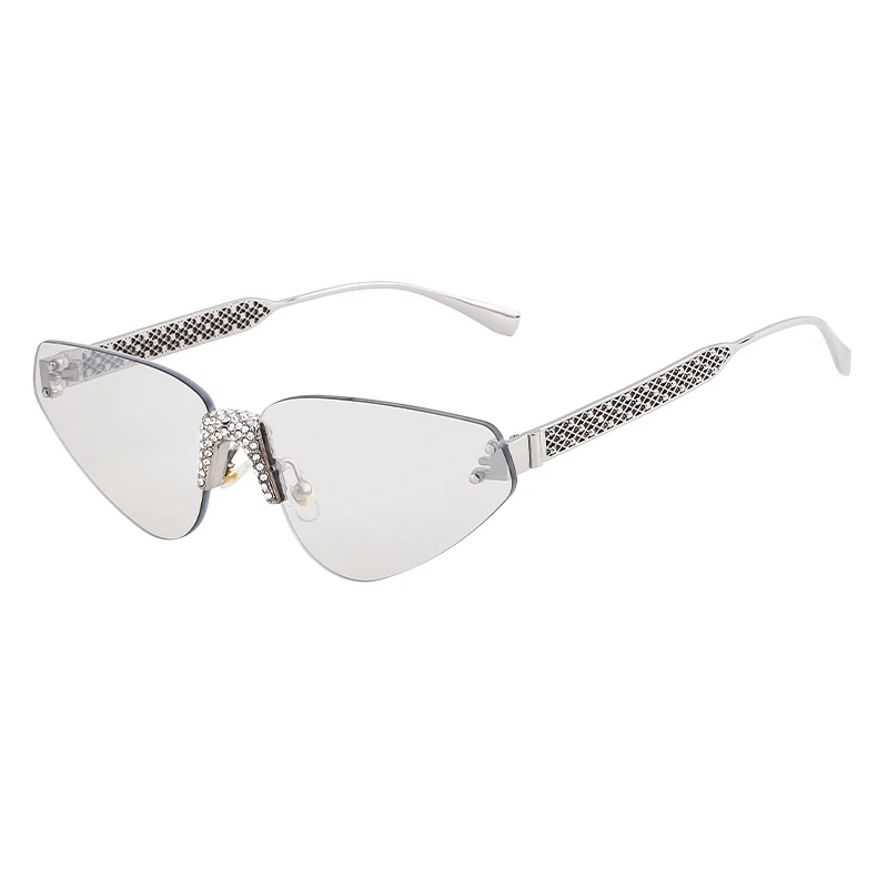 Rimless Rhinestone Cat Eye Sunglasses