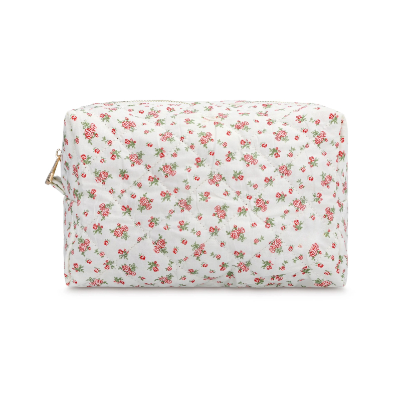 Add a touch of elegance to your everyday routine with this beautiful rose floral makeup bag. Whether you’re packing for a trip, heading to a party, or simply organizing your skincare essentials, this large cosmetic pouch will meet all your needs. Its soft cotton fabric and floral design combine practicality with style, making it an ideal accessory for any occasion. The sturdy zipper ensures your items stay secure, while its roomy interior offers plenty of space for all your makeup, toiletries, and even skincare products.