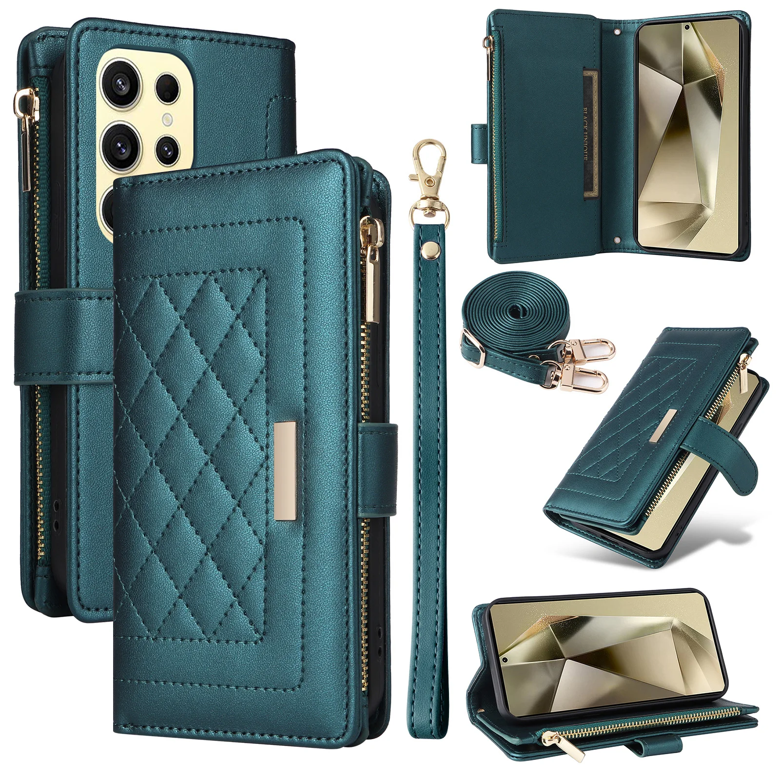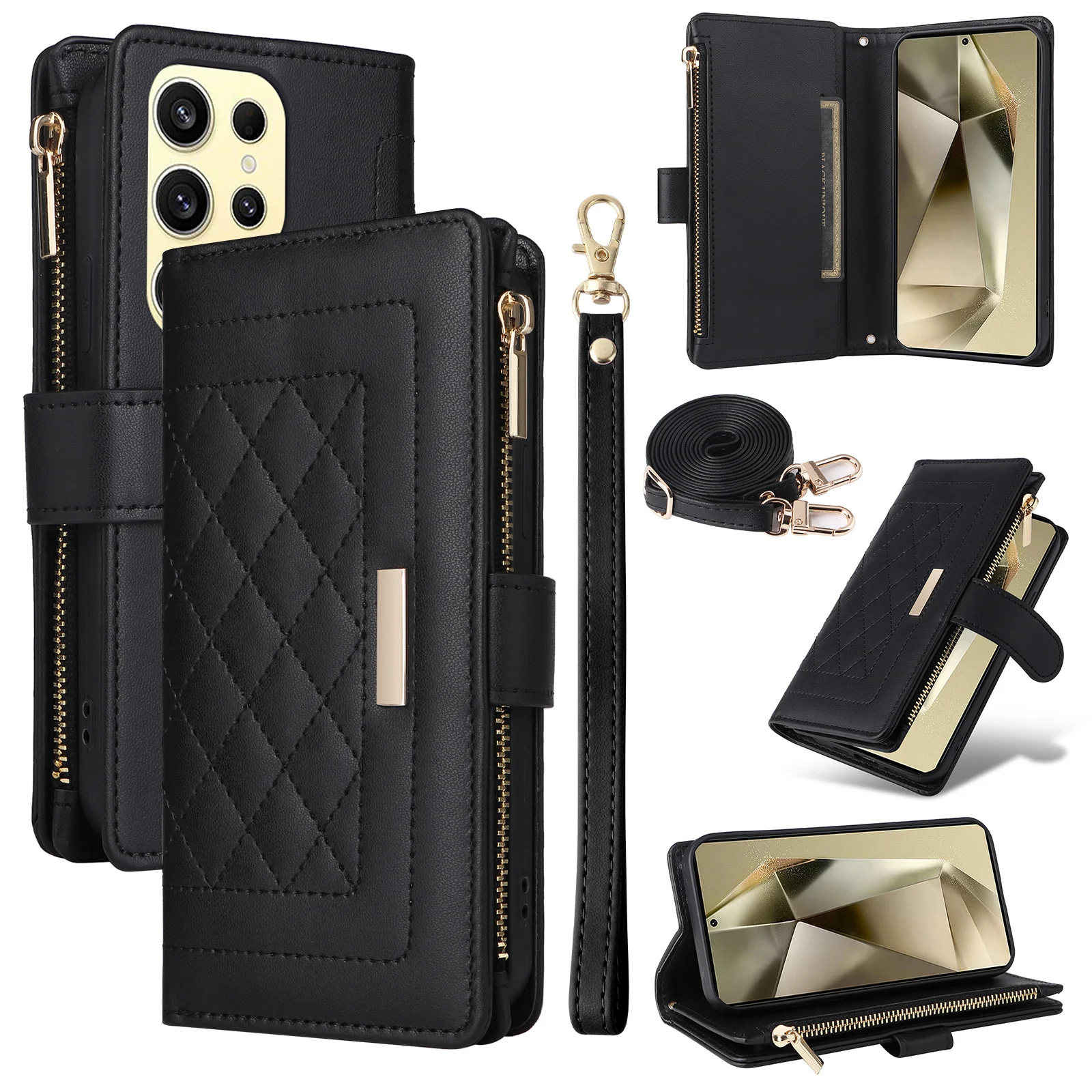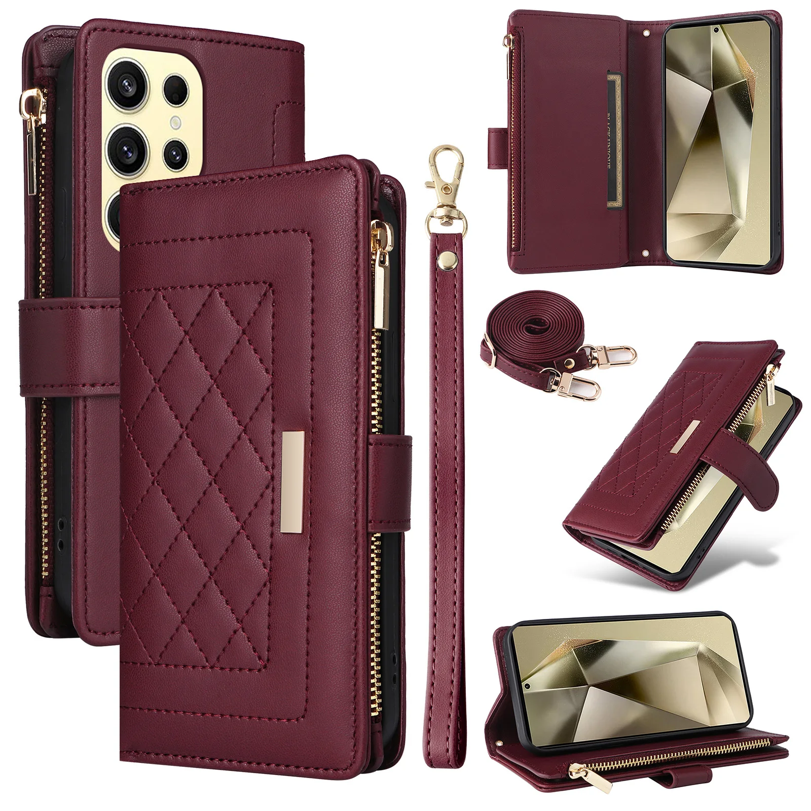 Samsung Crossbody Wallet Case with Card Slots and Leather Zipper Bag