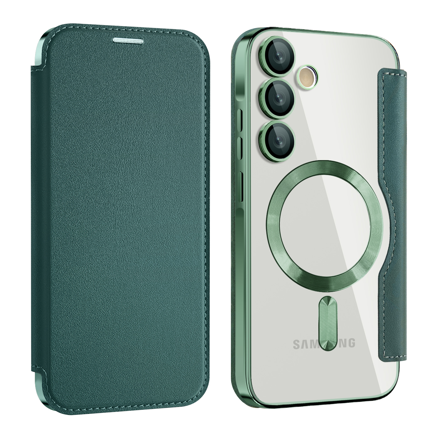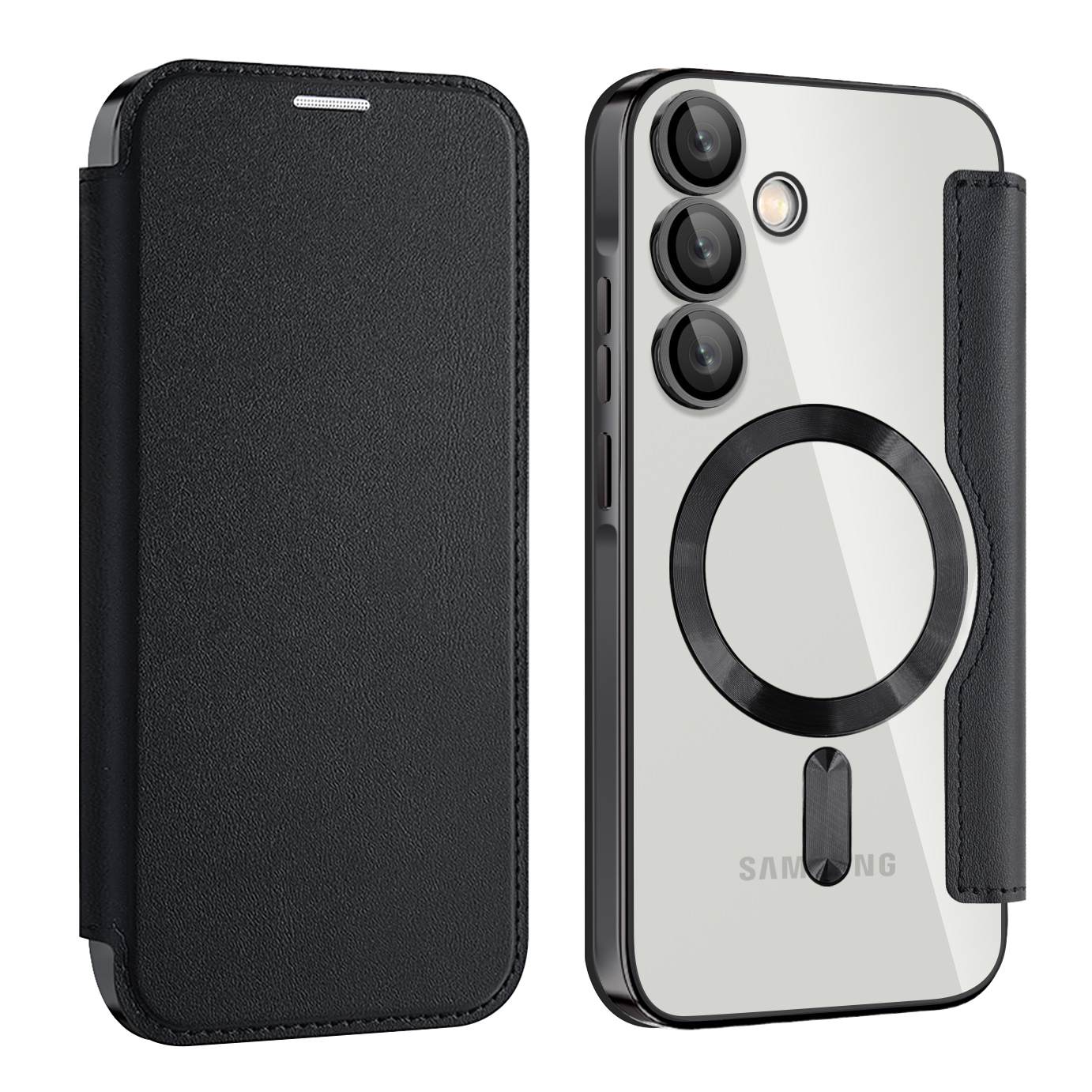 Samsung Galaxy Leather Magnetic Wallet Case with Clear Back