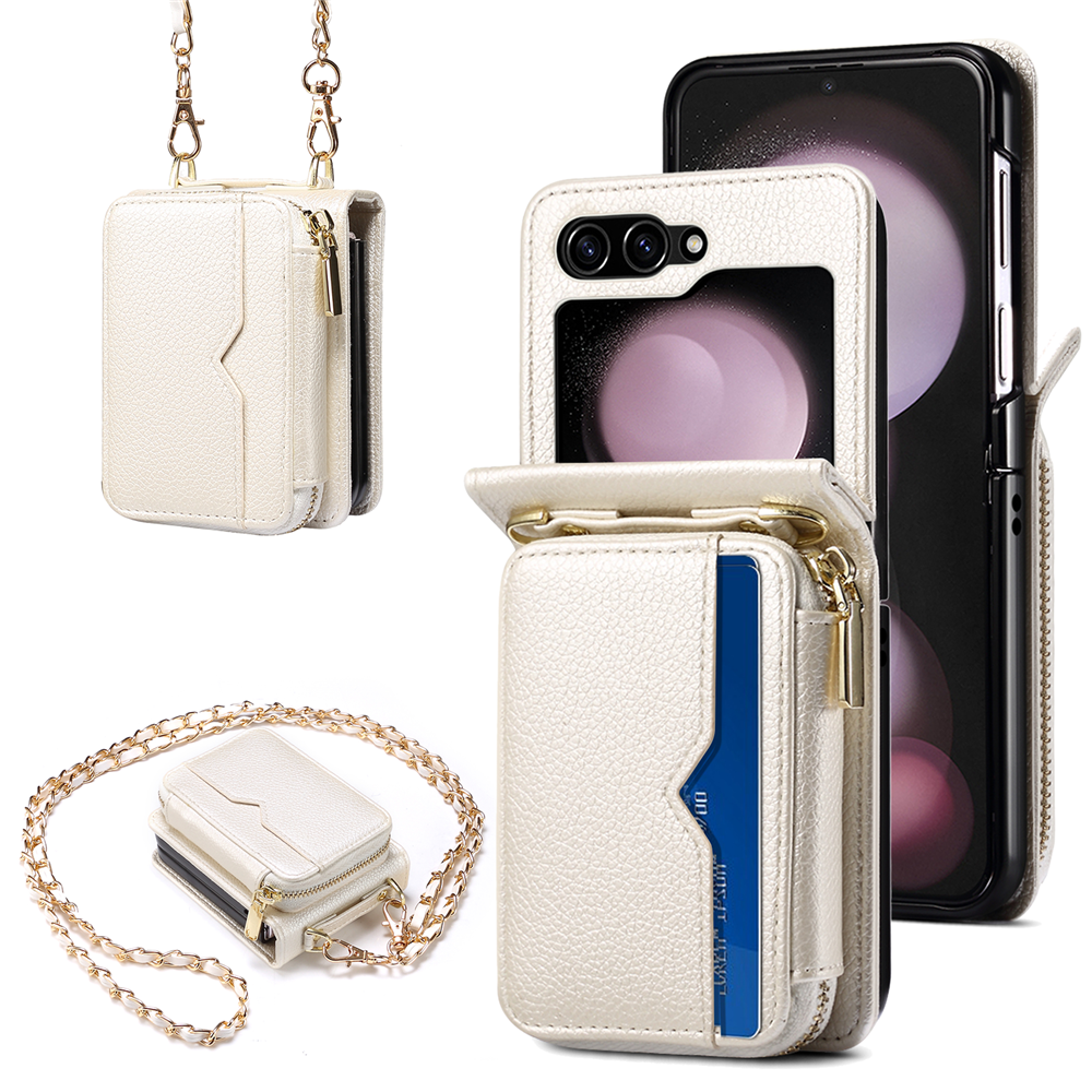 Samsung Galaxy Z Flip 6/5 Leather Zipper Flip Wallet Case with Lanyard