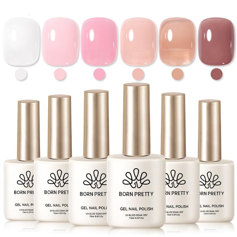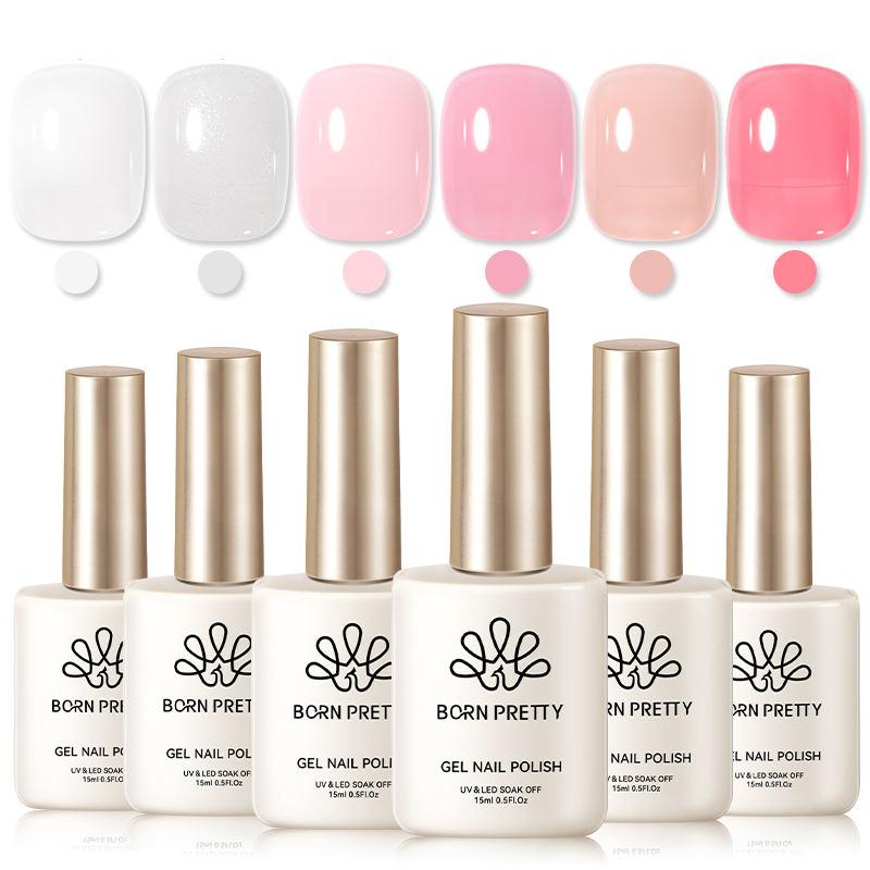 • Set includes 6/8 bottles of gel polish in soft, transparent nude pink and white shades.