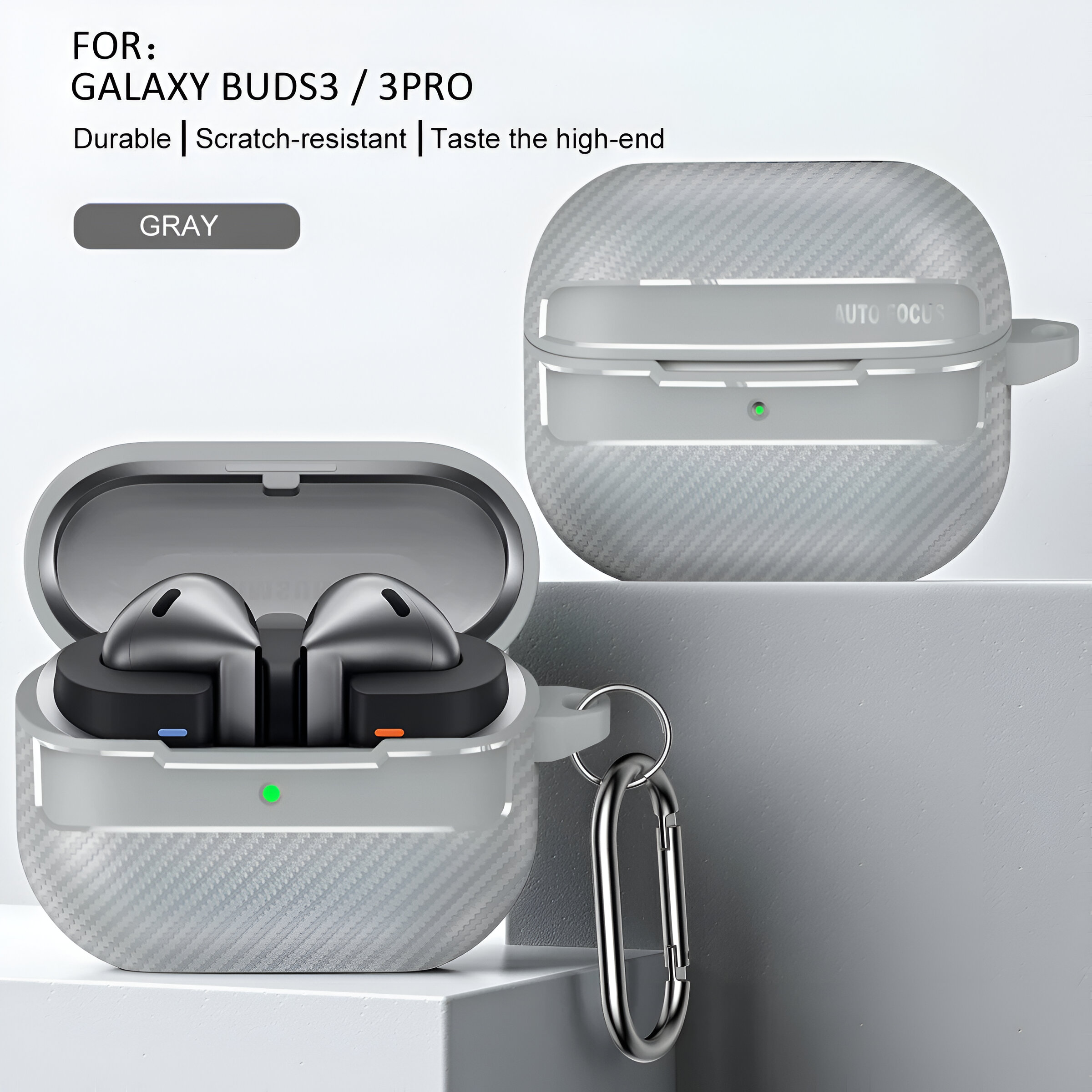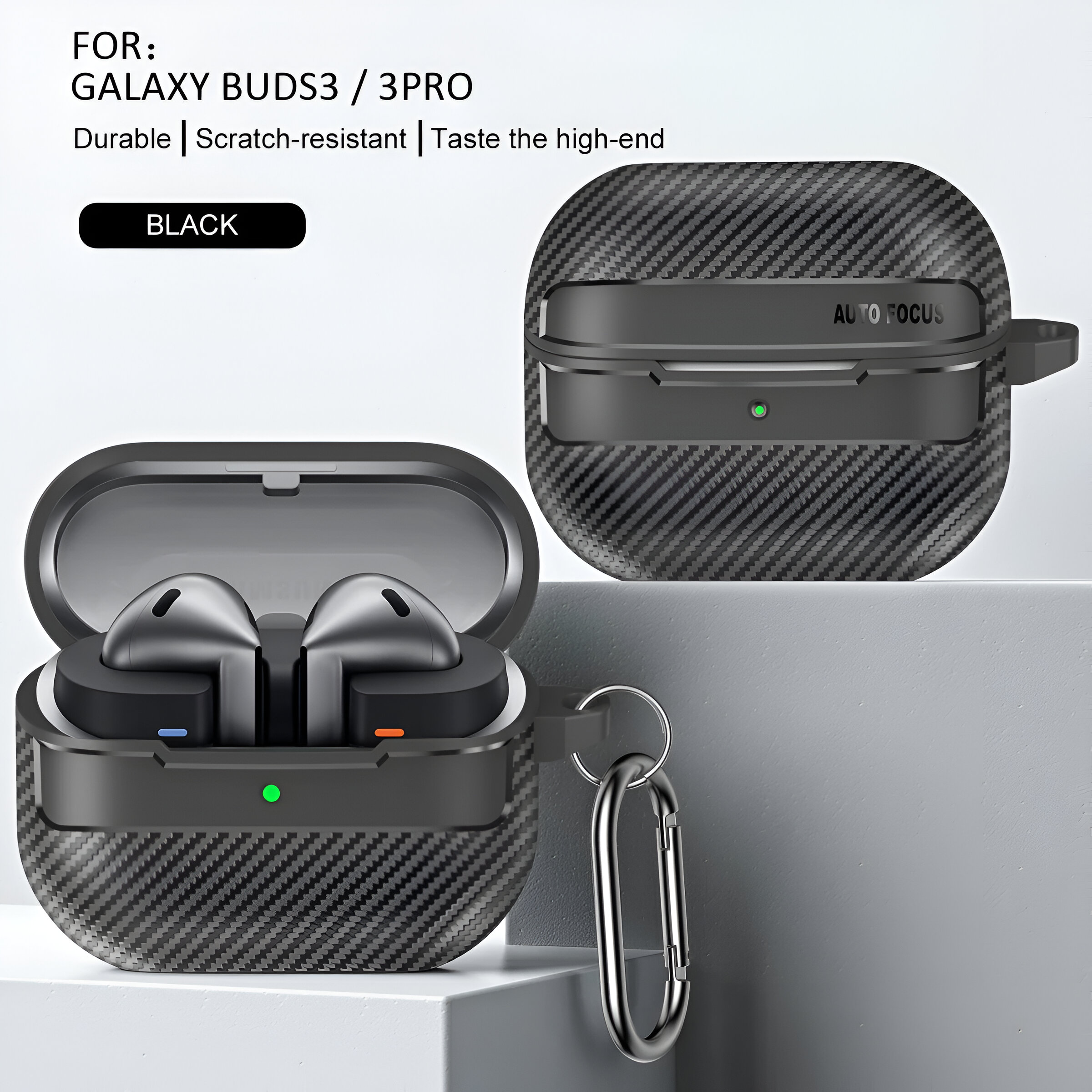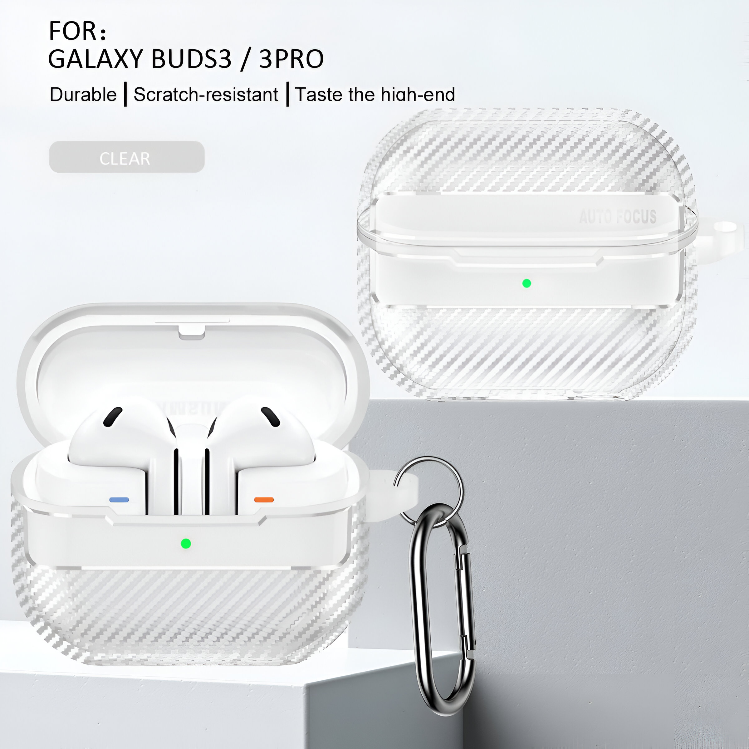 This protective case for Samsung Galaxy Buds 3 and Buds 3 Pro is packed with features that make it a reliable choice for safeguarding your earbuds: