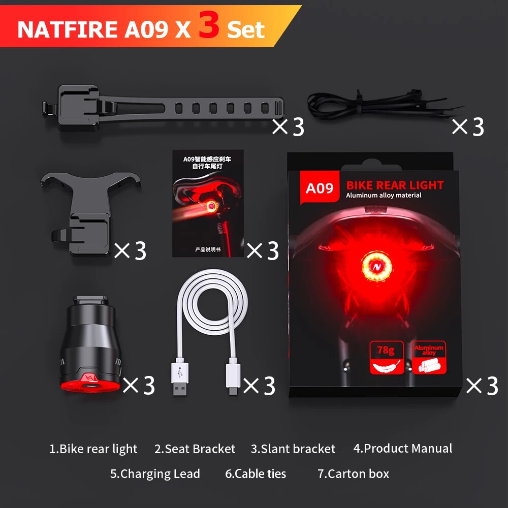 Enhance your safety and visibility on the road with the NATFIRE A09 Smart Auto Brake Sensing Bicycle Tail Light. Order yours today and enjoy worry-free cycling wherever the road takes you!