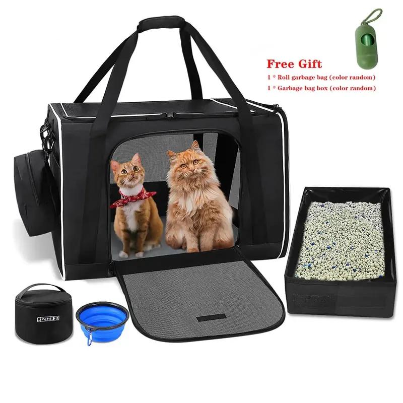• Built-in Litter Box & Food Bowl: Travel hassle-free with an included litter box and a collapsible pet bowl.