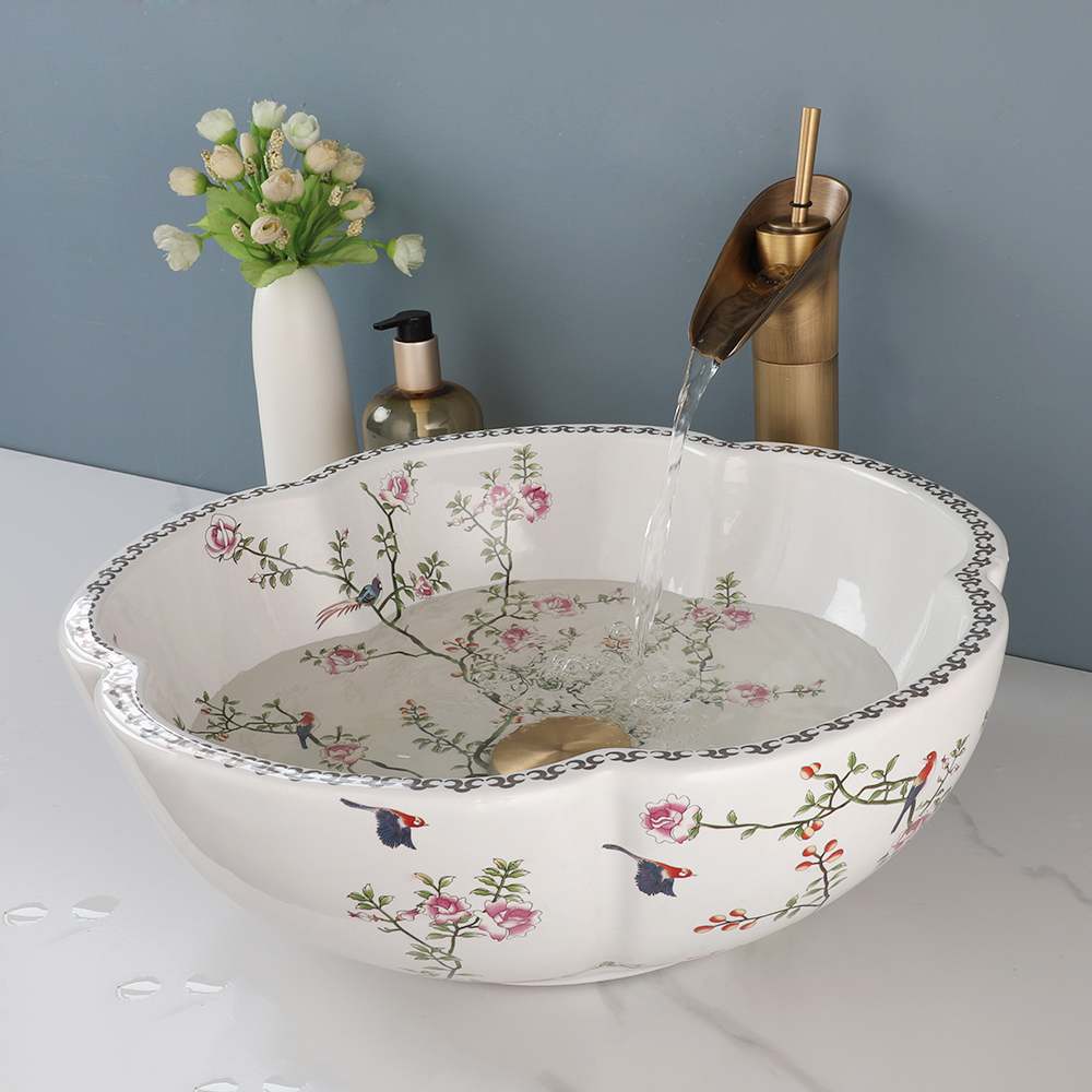 This Ceramic Basin Set is more than just a functional item; it is a piece of art that enhances the aesthetics of any bathroom. Ideal for master baths or guest powder rooms, this basin’s elegant floral design brings nature indoors, adding a sense of calm and beauty to your space. The antique brass faucet complements the basin, providing a cohesive, vintage-inspired look that suits both classic and modern interiors.