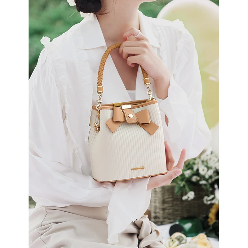 Stylish Bucket Shoulder Crossbody Bag with Bowknot