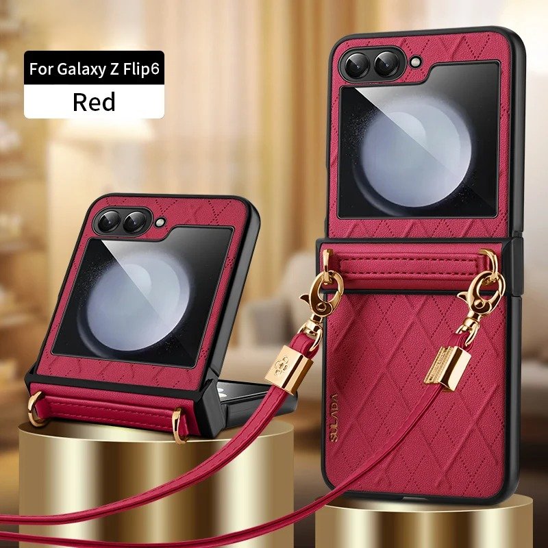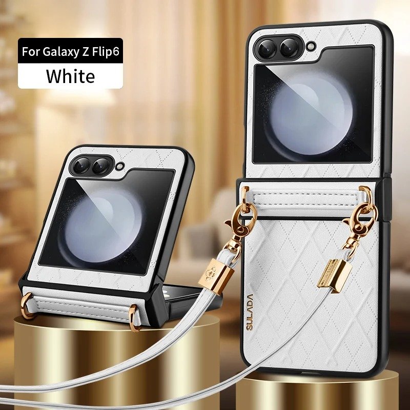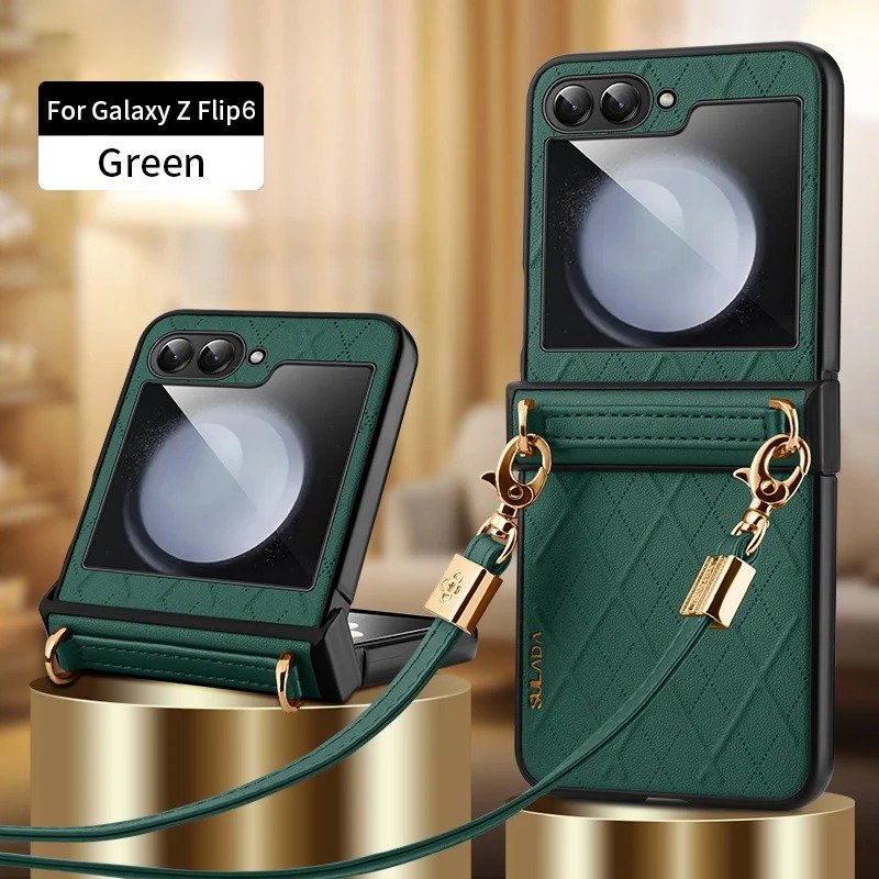 Elevate your Samsung Galaxy Z Flip experience with the Crossbody Fragrant Wind Leather Hinge Case. Designed specifically for the Samsung Galaxy Z Flip 6, 5, and 4, this case combines elegance, functionality, and ultimate protection. Whether you’re out on the town or handling daily errands, this lightweight, all-in-one case ensures your phone is safe, accessible, and effortlessly stylish.
