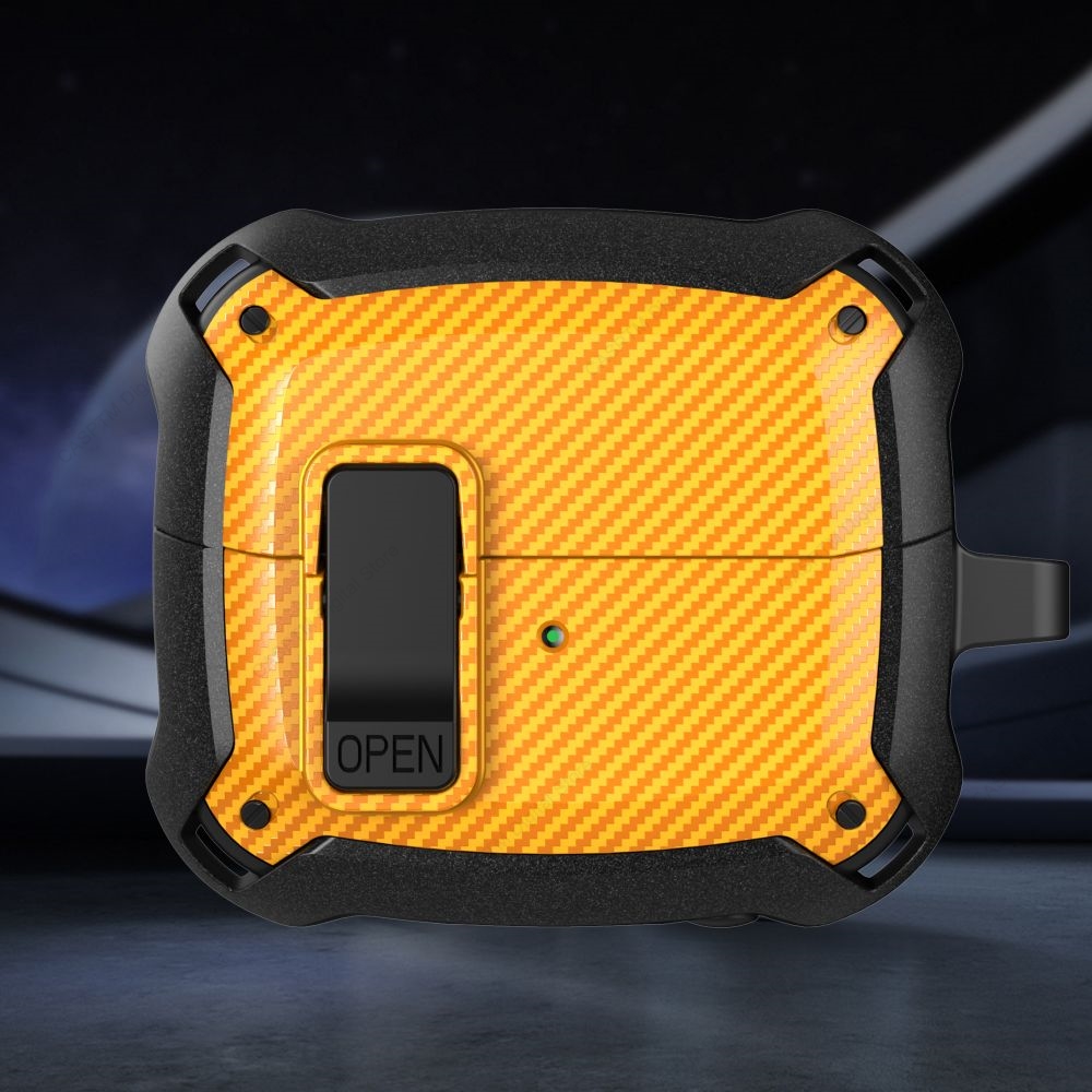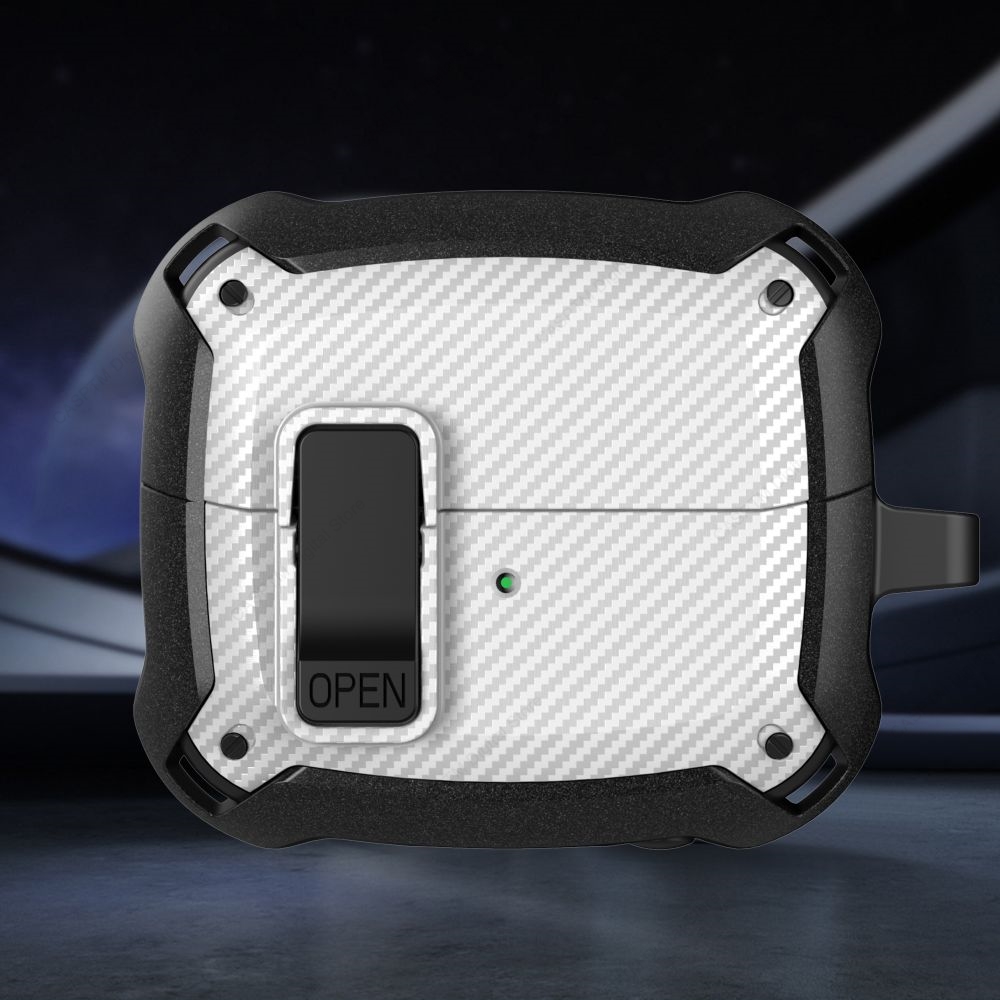 Unlike ordinary cases, the Switch Buckle Armor Case combines functionality and aesthetics. The carbon fiber finish exudes a premium feel, while the robust materials provide long-lasting protection. Its lightweight design ensures easy portability, and the switch buckle mechanism guarantees a snug and secure fit for your Galaxy Buds 3 Pro.