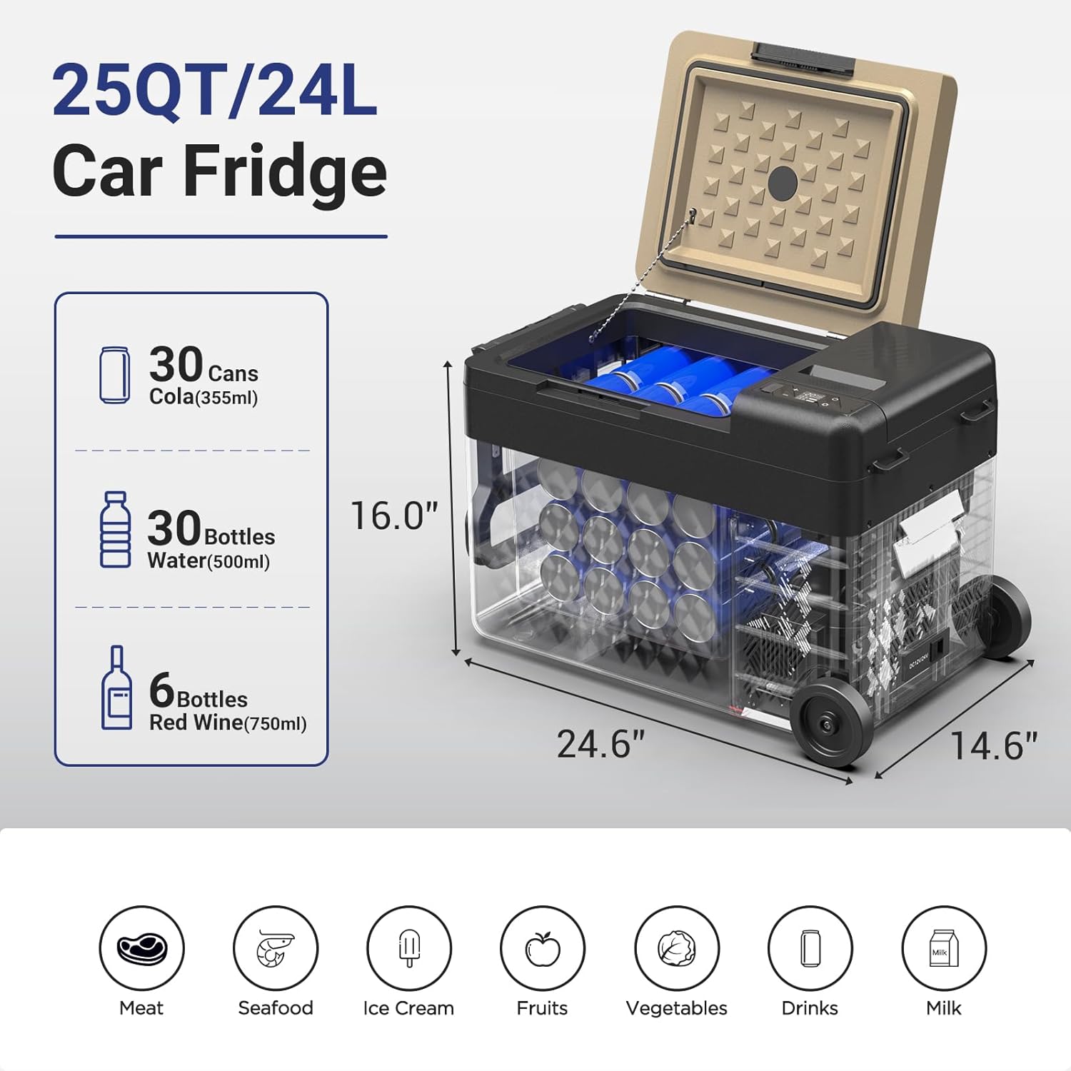 Elevate your Tesla road trips, camping adventures, and daily commutes with this high-performance mini car refrigerator and freezer. Designed for seamless integration with Tesla vehicles, this portable, dual-use cooler offers powerful cooling without the need for ice, keeping your drinks icy cold and your food fresh no matter where the road takes you.