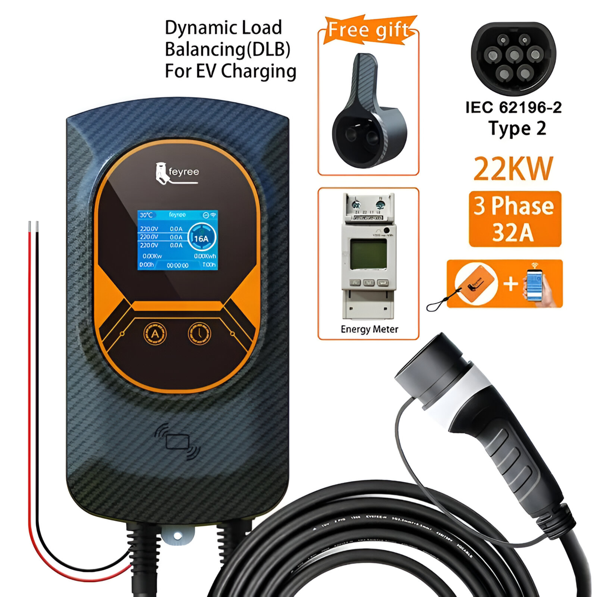 Charge your Tesla faster and smarter with this high-performance EV Charging Station. Designed to deliver up to 22KW of power, this charger ensures you spend less time waiting and more time on the road. Featuring a built-in Dynamic Load Balancing system, it intelligently distributes power to prevent electrical overload while maximizing efficiency. With app control, a large LCD display, and weather-resistant construction, this charger is the perfect choice for both home and business use.